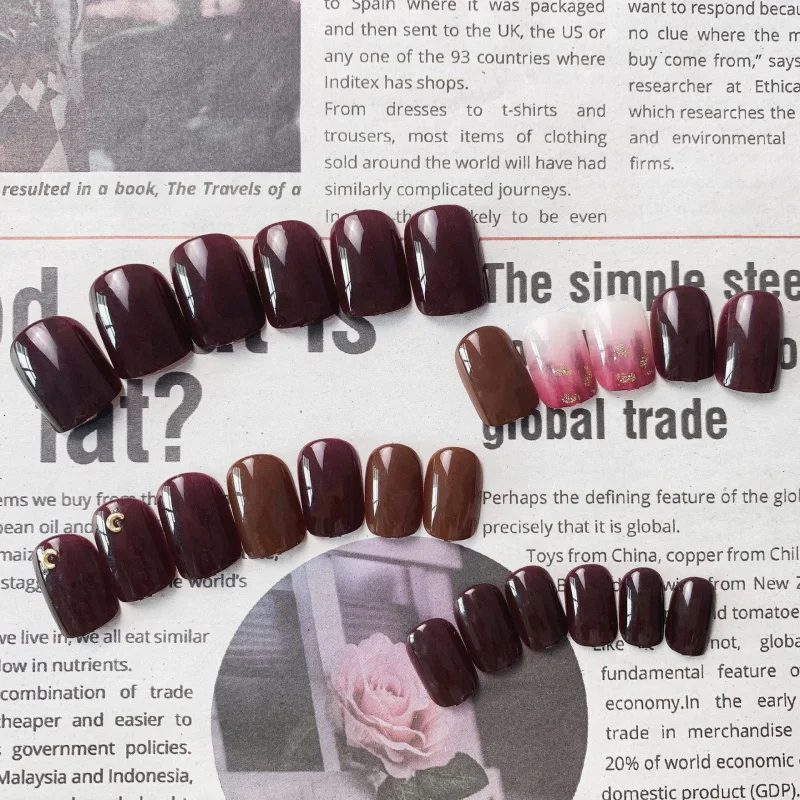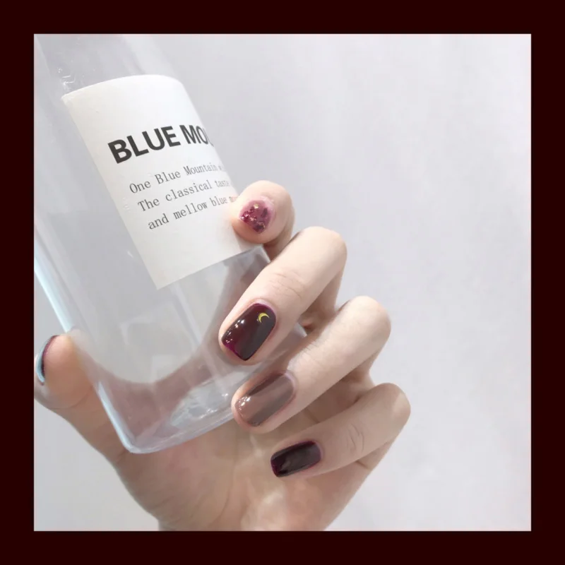 GAM-BELLE 24 шт винно-красные цветущие поддельные ногти Блестящий 3D лунный Декор французские короткие искусственные накладные ногти Советы DIY Маникюрный Инструмент