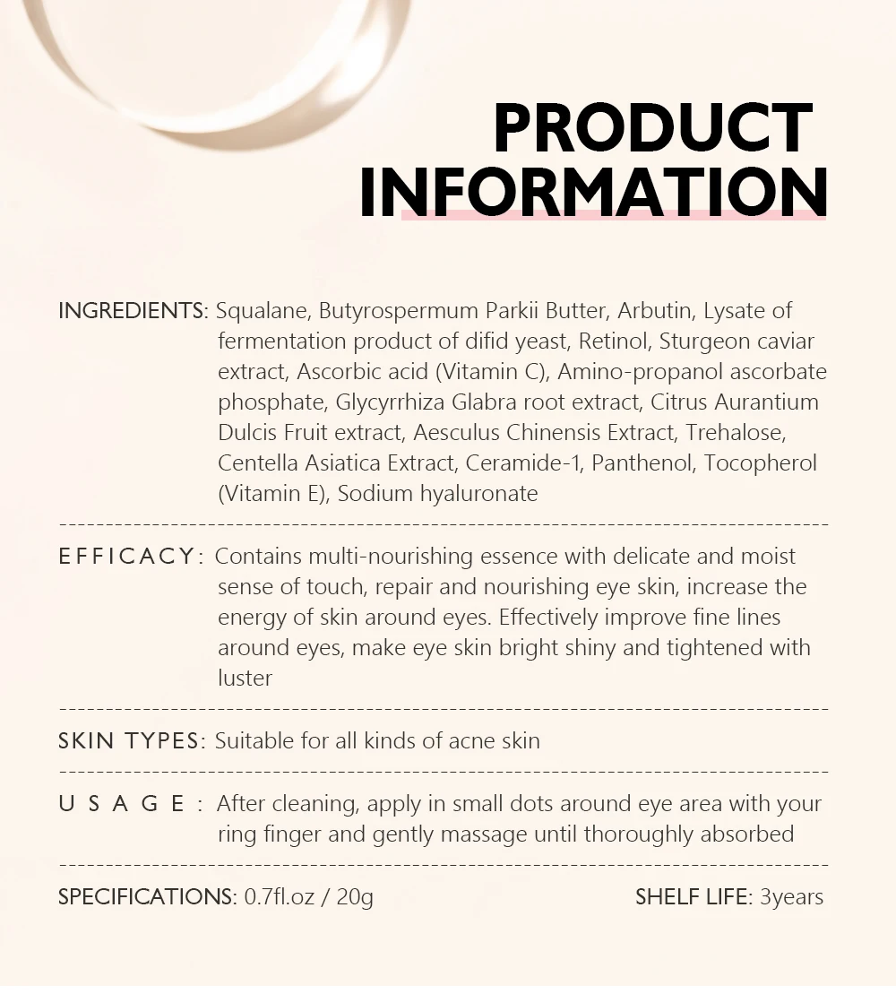 Яркие Гламурные ретинол для ухода за областью вокруг глаз против темных кругов, Fade против мимических морщин, средство для удаления против мешков под глазами, крем для лица против морщин и антивозрастной укрепляющий осветляет кожу 20g