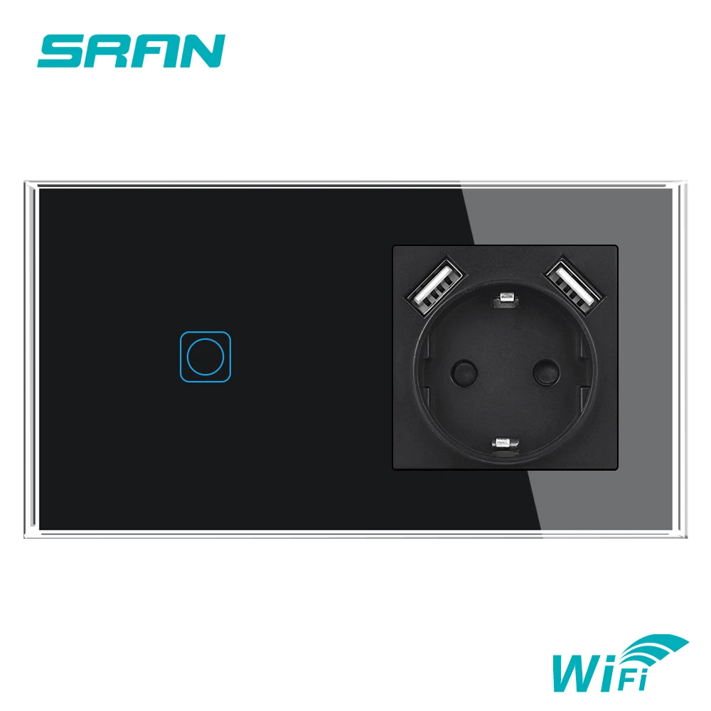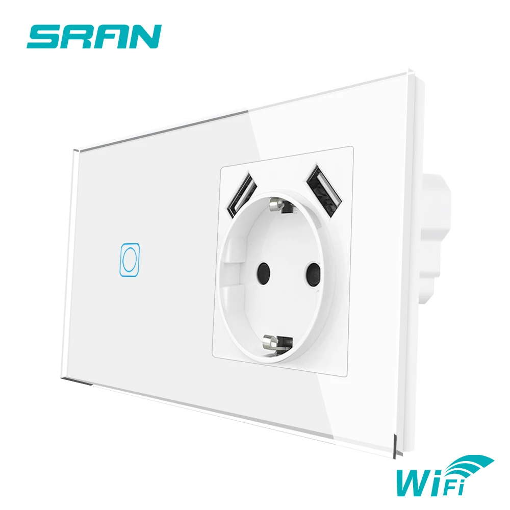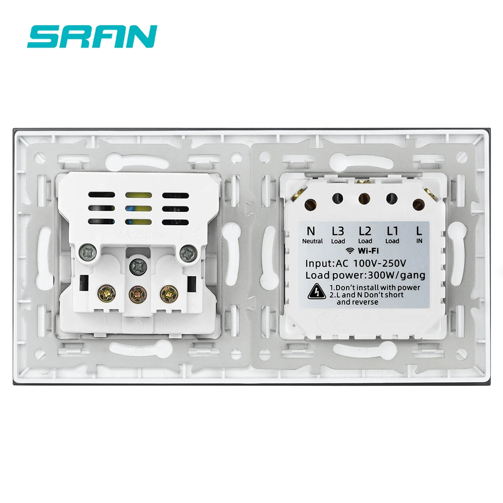 Настенная розетка SRAN Tuya, 153 х82 мм, 16 А, с выключателем