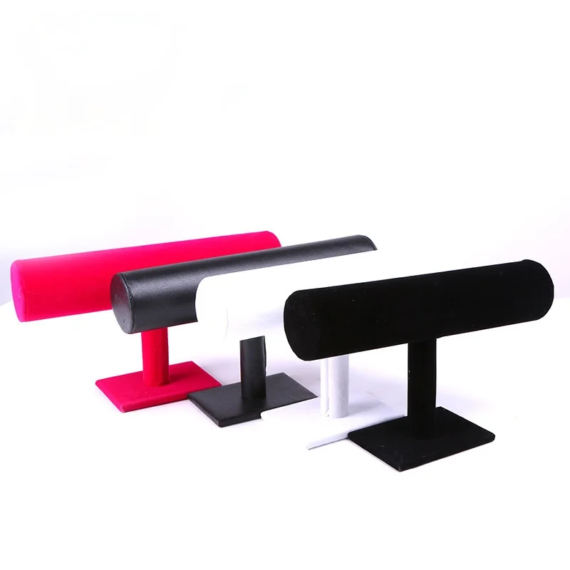 Модный черный бархатный T-образный демонстрационный стенд для браслетов и часов, однослойный демонстрационный стеллаж для ювелирных изделий из замши, полка для хранения