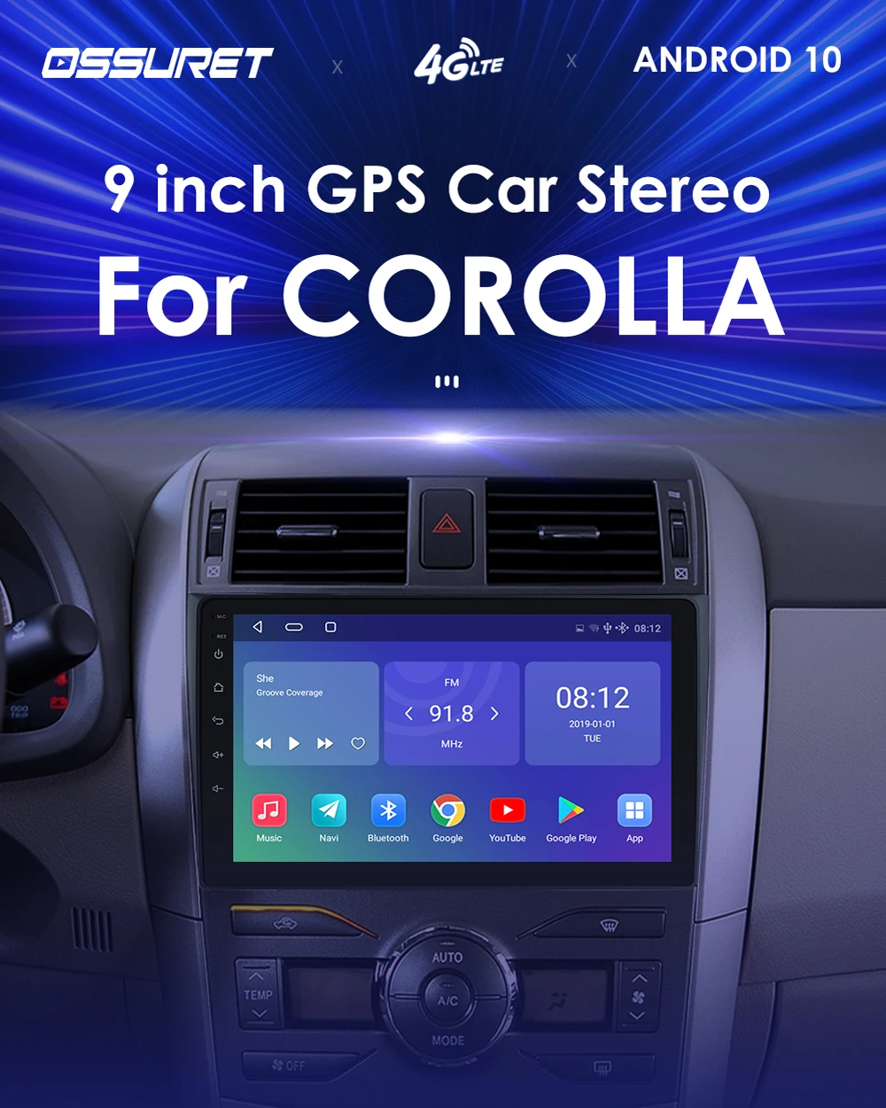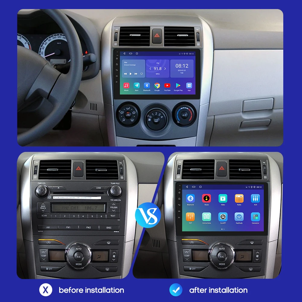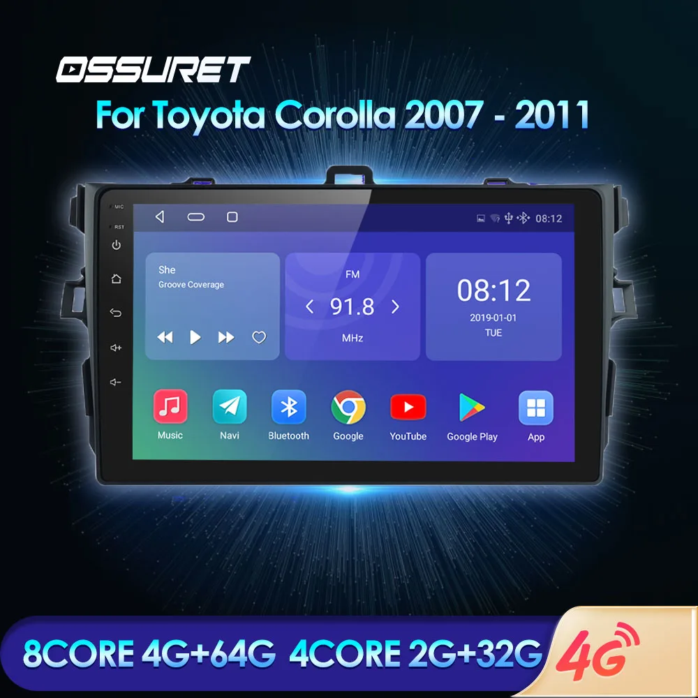 Автомагнитола OSSURET, 2DIN, Android, для Toyota Corolla E140, E150, 2009, 2010, 2011, стерео, мультимедийный, USB, 4G, радио, плеер, GPS, Carplay