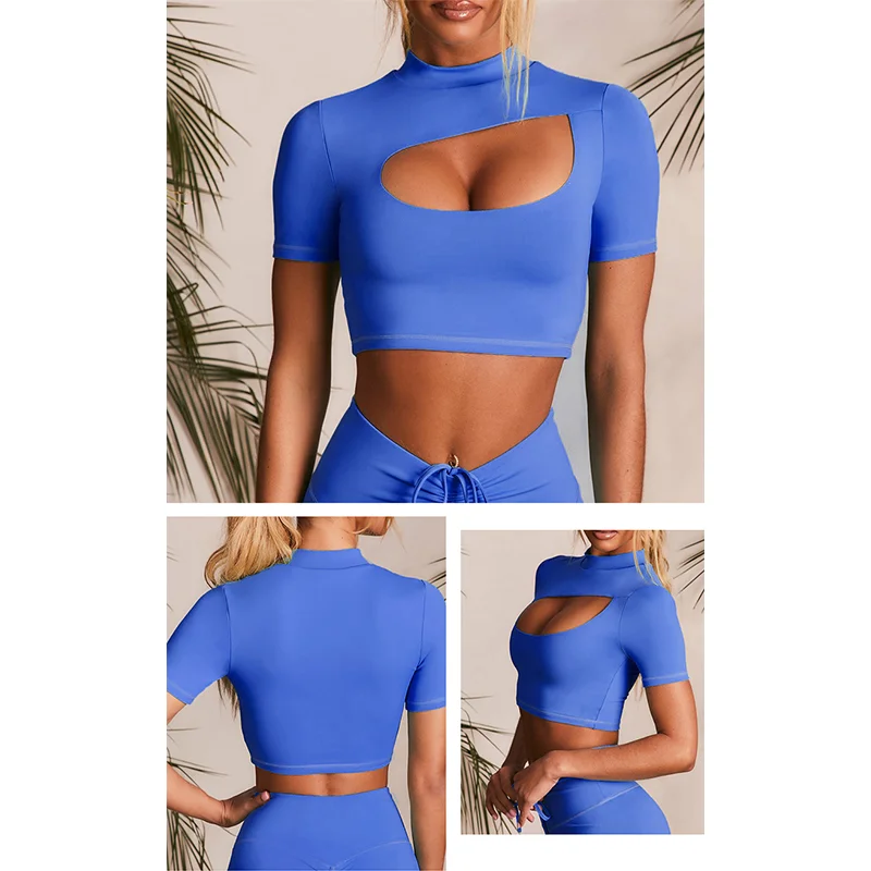 Женские Бесшовные комплекты для йоги с коротким рукавом, Спортивные...
