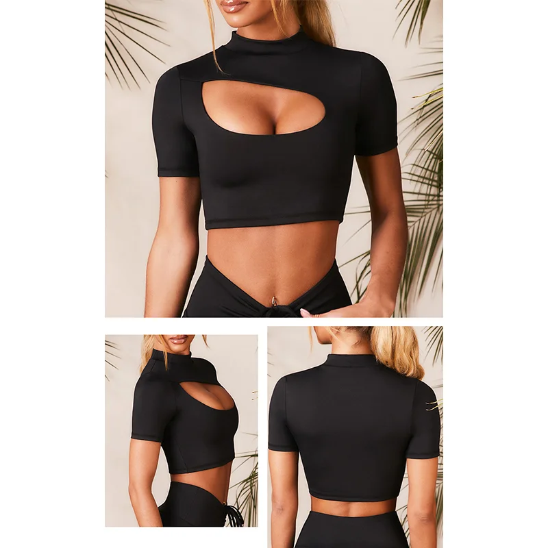 SALSPOR Женские однотонные Спортивные Рубашки Для Фитнеса Йоги пуш-ап рубашка с коротким рукавом женский ажурный дышащий Топ