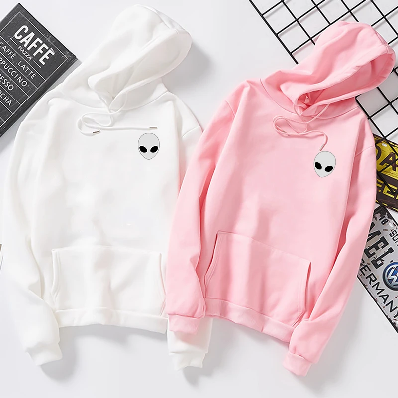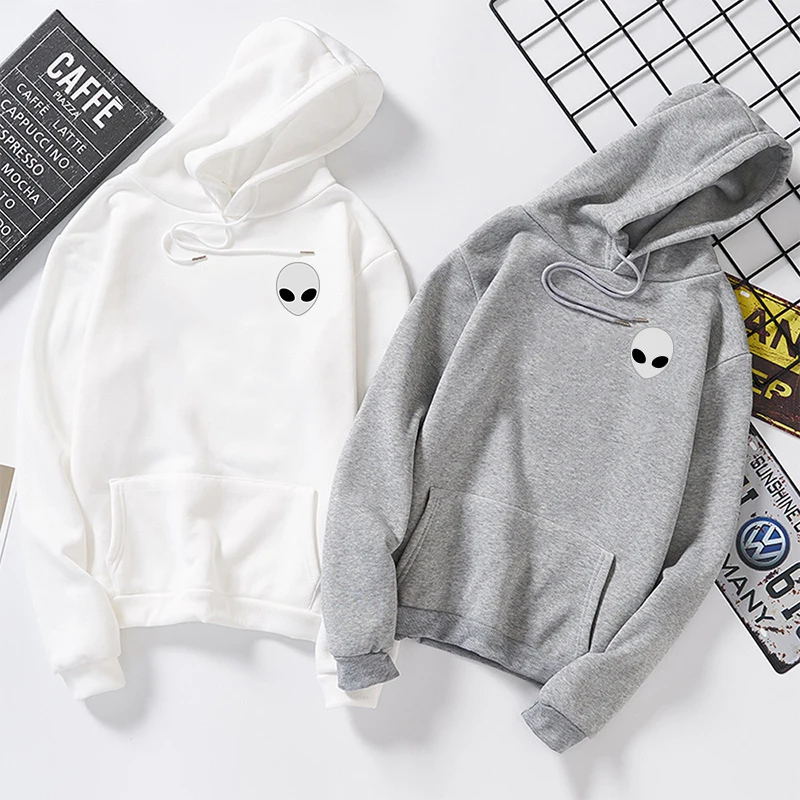 Зимние толстовки с принтом инопланетянина, однотонные толстовки с капюшоном, Женская толстовка с капюшоном в стиле Харадзюку, Осень-зима размера плюс