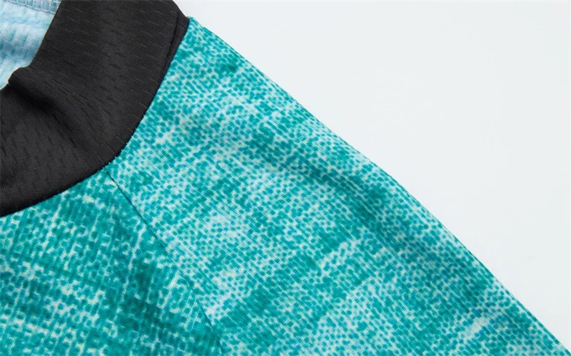Ткань одежды изготовлена из полиэфирной сетки, которая хорошо впитывает пот и пропускает воздух, и в то же время обладает высокой эластичностью и эластичностью, что делает ношение более комфортным и близким к телу. Ткань имеет охлаждающий эффект и функцию дезодоранта.