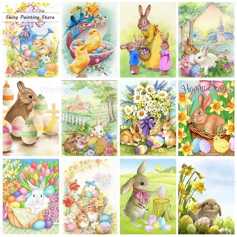 Алмазная картина с пасхальным кроликом яйцом, полноразмерная квадратная круглая картина 5D, алмазная вышивка сделай сам, мозаика, вышивка крестиком, искусство, творчество, пасхальные подарки