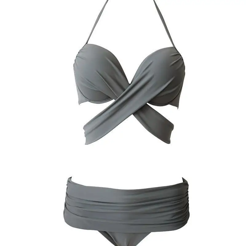 Бикини Ins с перфорацией, пикантный раздельный комплект из двух предметов, соблазнительный купальник с перекрестными лямками, сетчатый красный купальник с разрезом