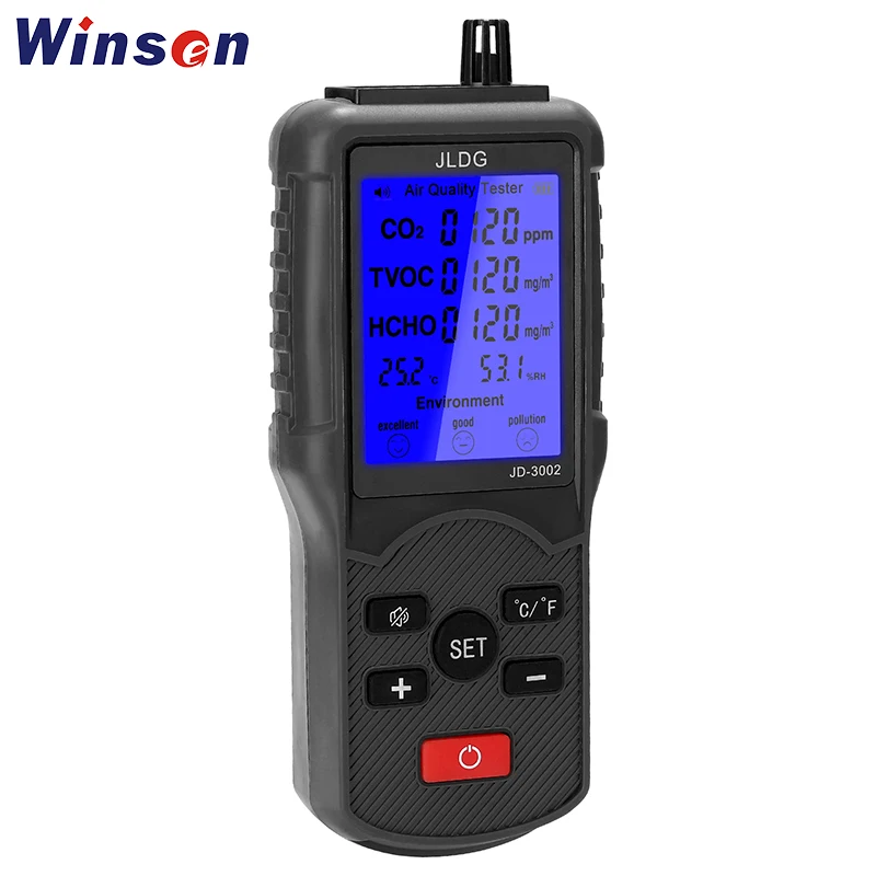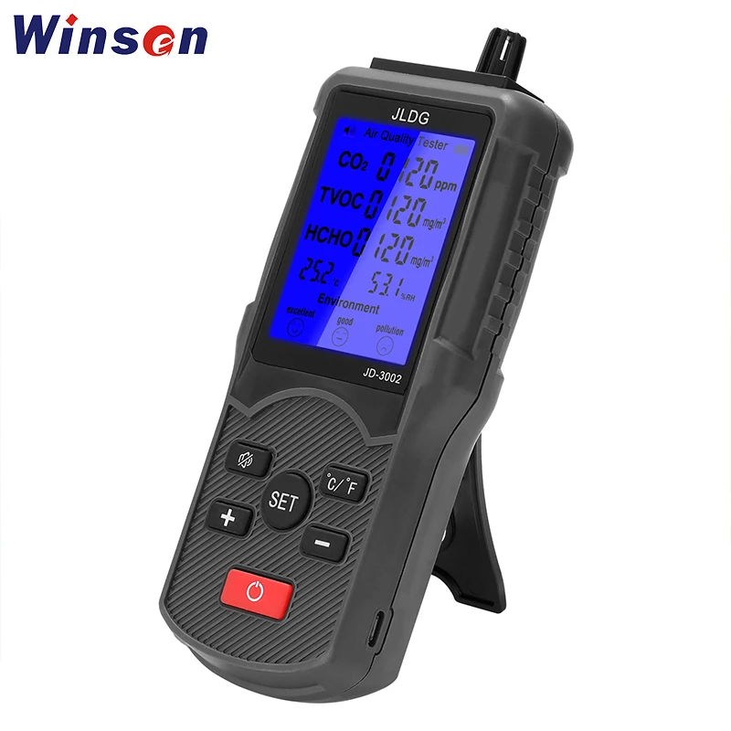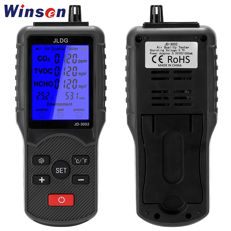 Многофункциональный монитор качества воздуха CO2 тестер TVOC HCHO детектор температуры и влажности устройство обнаружения углекислого газа мониторЭто своего рода высококачественный детектор качества воздуха, который принимает Профессиональный электрохимический зондирующий модуль, высокую точность, стабильную производительность, способность к подавлению помех, низкое потребление и может обеспечить длительный срок службы. Точное определение CO2. Большой дисплей, вы можете видеть количество электроэнергии, значение CO2, значение TVOC, значение HCHO, температуру и влажность четко. Вы можете попробовать.Особенности:Принимает цифровой датчик температуры и влажности, высокая точность, стабильная производительность, способность к подавлению помех, низкое потребление и может обеспечить длительный срок службы.Большой ЖК-дисплей, вы можете видеть количество электроэнергии, значение CO2, значение TVOC, значение HCHO, температуру и влажность четко.Переключение ℃ и ℉, и звуковой сигнал может быть включен или выключен в соответствии с вашими требованиями.Оснащен функцией оценки качества окружающей среды, он будет отображать соответствующий уровень в соответствии с измерительной стоимостью.Встроенный литиевый аккумулятор емкостью 1800 мАч, легко заряжать его с помощью usb-кабеля.Когда аккумулятор слишком низок, рамка аккумулятора мигает, чтобы напомнить вам о его перезарядке.Характеристики:Название: монитор качества воздухаМатериал: пластикДисплей: ЖК-дисплейБатарея: 1 * Встроенная литиевая батарея Батарея, 3,7 V, 1800 мА · ч (входит в комплект)Диапазон измерения CO2: 350ppm-2000ppmTVOC измерение-диапазон: 0,000 мг/м³-2,000 мг/м³HCHO измерение-диапазон: 0,000 мг/м³-1,000 мг/м³Измерение температуры-Диапазон: 0 ℃-90,0 ℃(32 ℉-194 ℉), ± 1 ℃/± 1 ℉Размер изделия: 176*73*29 мм/6,93*2,87*1,14 дюймовВес нетто: 222 г/7,83 унцийРазмер посылка: 190*90*30 мм/7,5*3,54*1,5 дюймовВес посылка: 300 гУпаковочный лист:1 * монитор качества воздуха1 * USB кабель