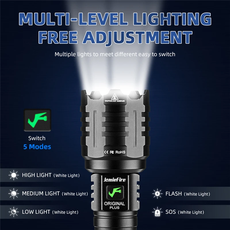 Параметры продукта: Модель продукта: JF008 Модель шарика лампы: 16-жильный светодиодный Материал линз: оптическая выпуклая линза Рабочая передача: 5 передач (сильный, средний, слабый, быстро мигает, медленно мигает) Размер продукта: длина 18,8 см, диаметр головки 5 см, диаметр хвоста 3,6 см Длина 20,8 см, диаметр головки 5 см, диаметр хвоста 3,6 см (длина после масштабирования) Применимый аккумулятор: 26650x 1/18650x1 (батарея опционально) Степень водонепроницаемости: IPX5 (водонепроницаемость, защита от дождя) Люмен: 5800 люмен Мощность продукта: 50 Вт Материал изделия: алюминиевый сплав Рабочее напряжение: 3,7 в Цвет продукта: черный Возможна Прямая зарядка: Прямая зарядка через USB TYPE-C (с двумя выходными и входными интерфейсами) Масштаб: Телескопический фокус Положение переключателя: Средний кнопочный переключатель Отображение мощности: переключатель имеет функцию отображения мощности. Зеленый светильник указывает на то, что мощность достаточна, а светильник указывает на низкую мощность, и его необходимо зарядить Упаковка фонарика: цветная коробка Вес нетто продукта: 287 г (один фонарик) Характеристики продукта: Новая быстрая зарядка USB Type-c, функция отображения аккумулятора, функция увеличенной выходной мощности, может использоваться в качестве внешнего аккумулятора для зарядки мобильных телефонов, увеличенный объектив, более широкий диапазон освещения, добавлена функция предохранительного молотка сзади, которая используется для аварийный побег. Противоскользящие линии корпуса трубки, атакованная голова. 1,16 основных лампочек, высокая яркость до 5800 люмен, срок службы 100000 часов; 2. Выпуклая линза: выпуклая линза «Орлиный глаз» большая выпуклая линза, хорошая светопропускающая способность, нелегко повредить, прочная алюминиевая головка для защиты линзы от износа 3. Телескопический зум: растяните голову влево и вправо, чтобы увеличить, режим астигматизма-концентрация, удобен в использовании в различных ситуациях; 4. Средний переключатель: высококачественный материал из натурального каучука, нескользящая обработка поверхности, сенсорный выключатель света для переключения режима освещения; 5. Контакт Аккумулятора: конструкция контакта аккумулятора имеет хорошую электропроводность и эффективно предотвращает плохой контакт.