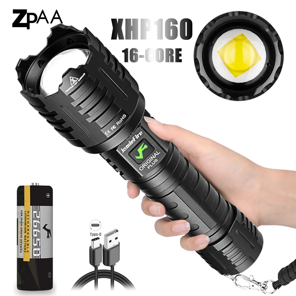 2021 XHP160 мощный светодиодный фонарик USB Zoom фонарь Водонепроницаемый наружное освещение 5000Mah тактическая вспышка лампа от 2665018650