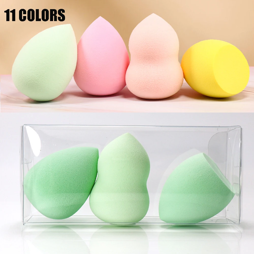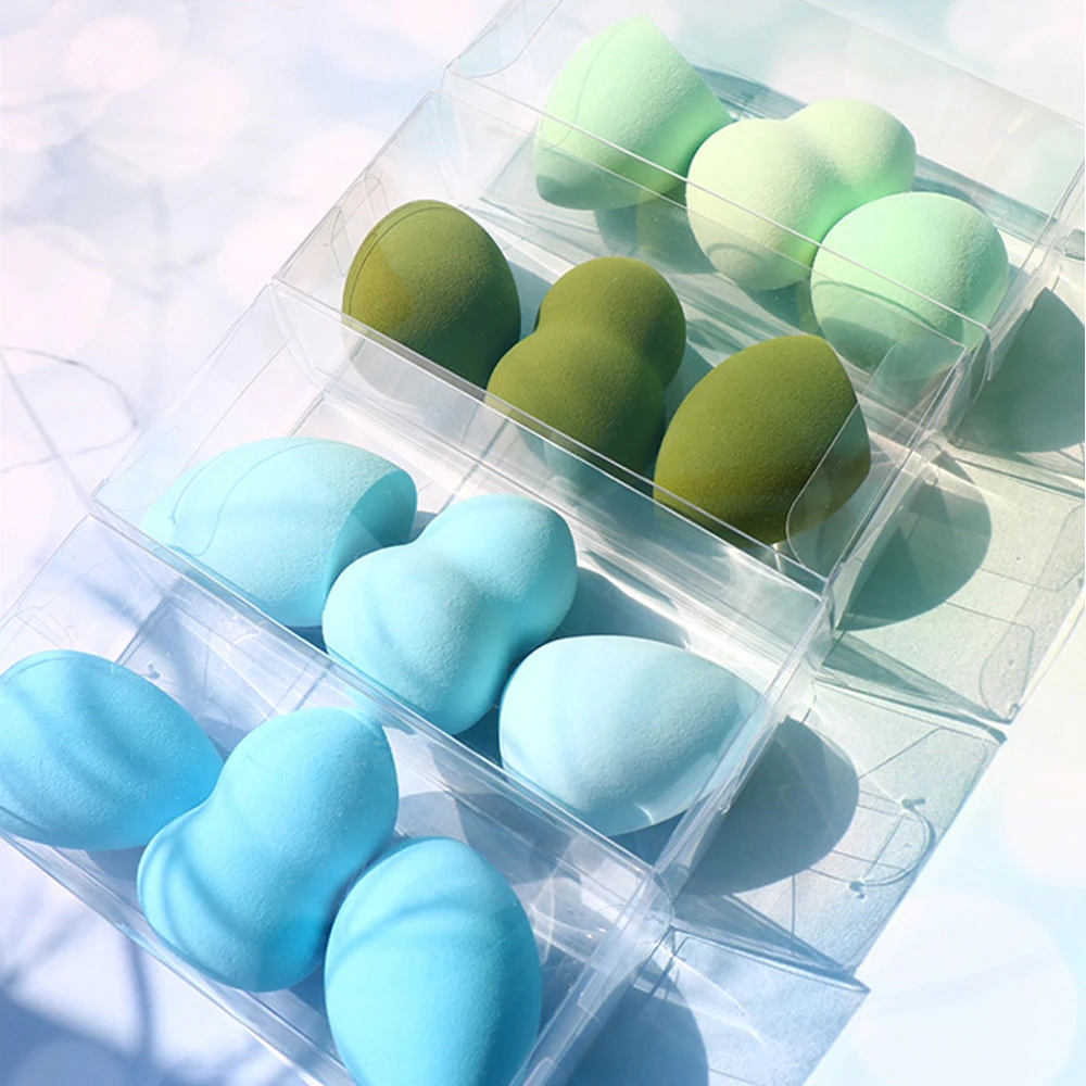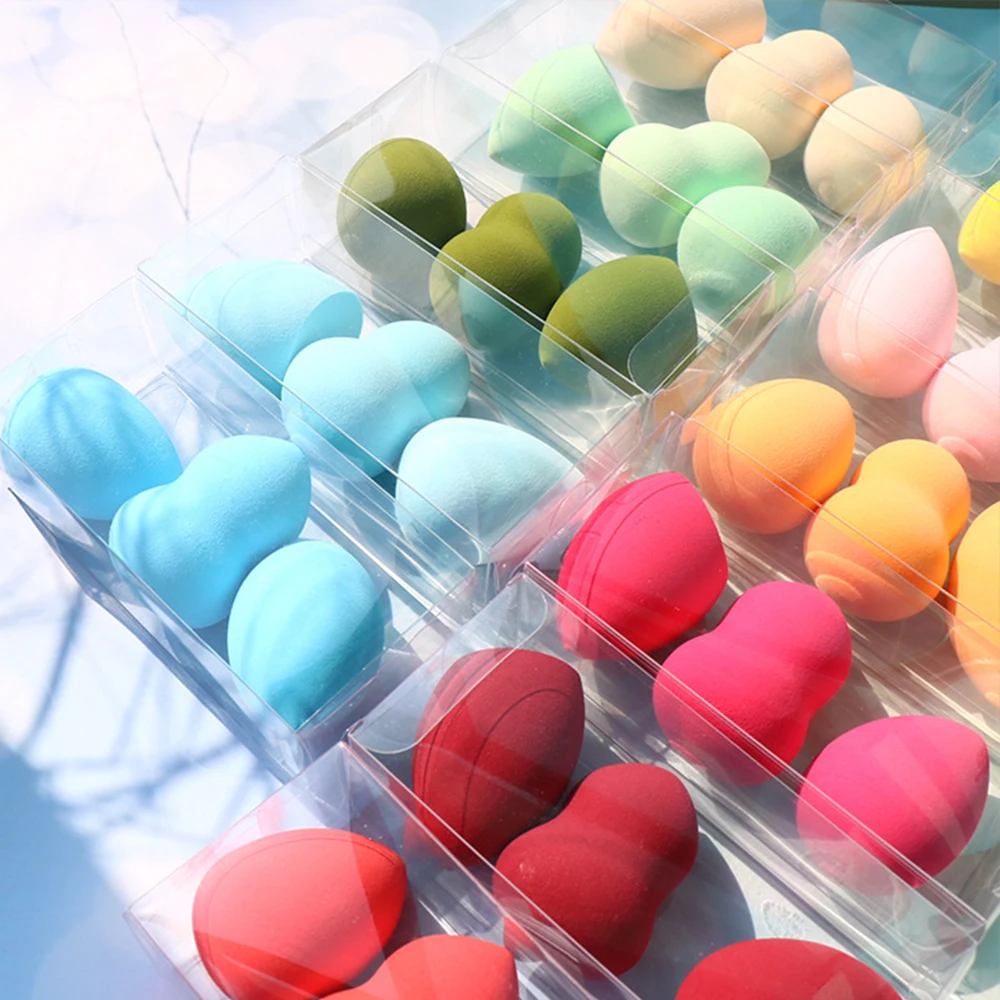 Косметическая губка для сухого и влажного использования, 3 шт., губка для макияжа, блендер, пудра, румяна, с коробкой для хранения, пластиковые инструменты для макияжа, оптовая продажа