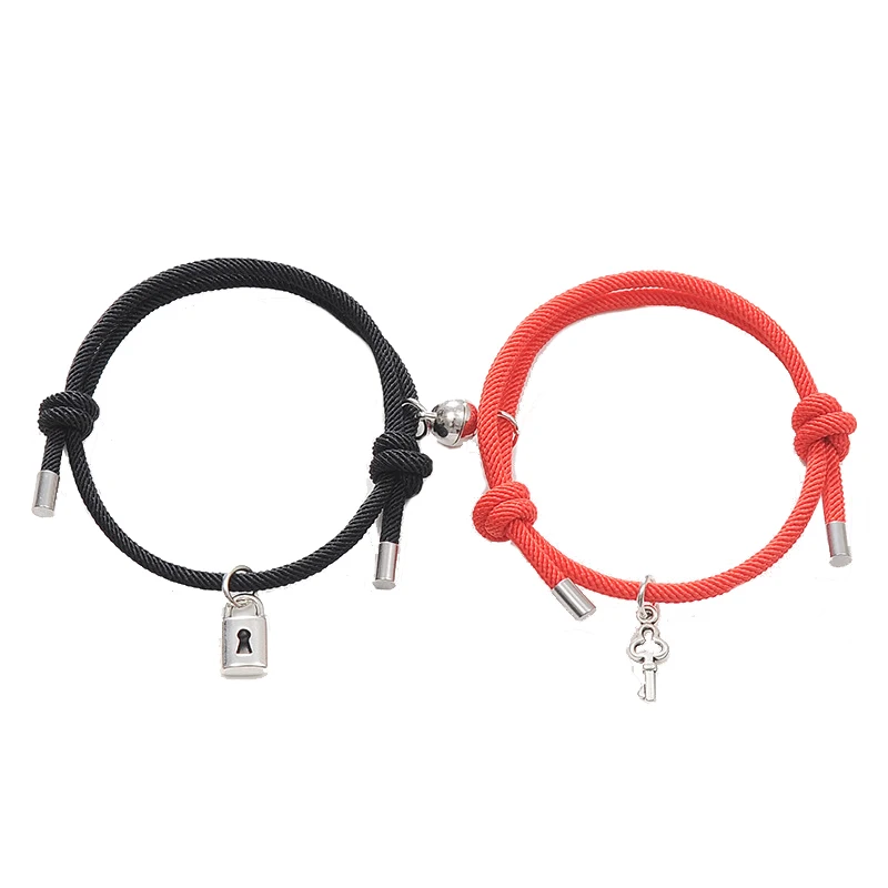 Романтический магнит браслет пары, классическое кольцо для ключей замок пара браслет Lucky черный, красный браслет из веревки Юбилей подарок привлекают Brazalete