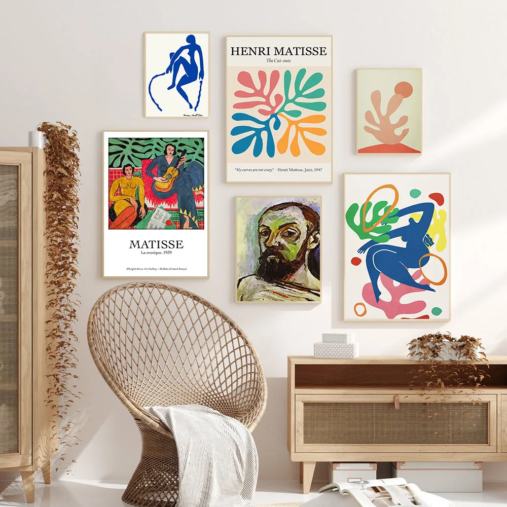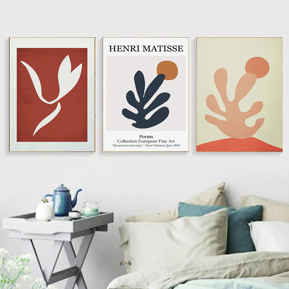 Абстрактная картина из линий Матисса, коралловые листья, настенная Картина на холсте, скандинавские постеры и принты, настенные картины для декора гостиной