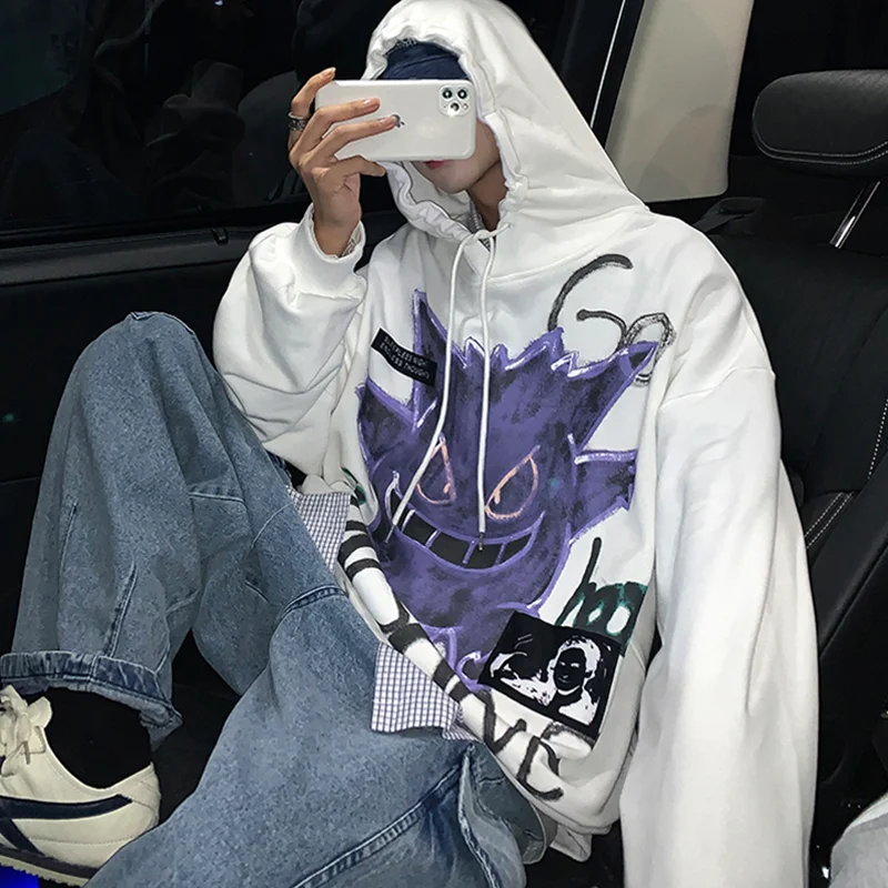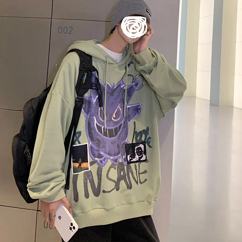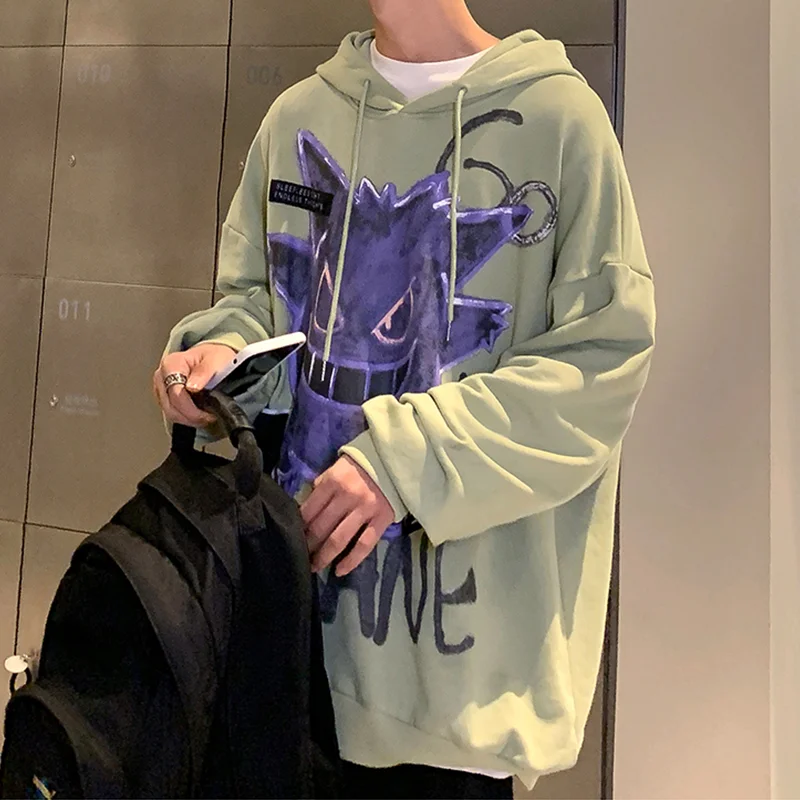 Новинка Осень-зима 2021, мужская толстовка с дьяволом, модные повседневные толстовки, свободная уличная одежда Feece в стиле хип-хоп, Мужская толстовка, одежда из аниме
