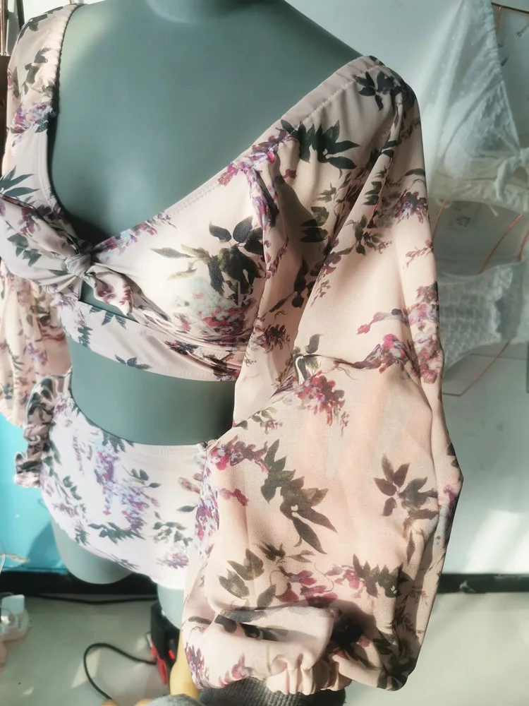 Купальник, комплект с длинными рукавами, в белый горошек шифоновая ...