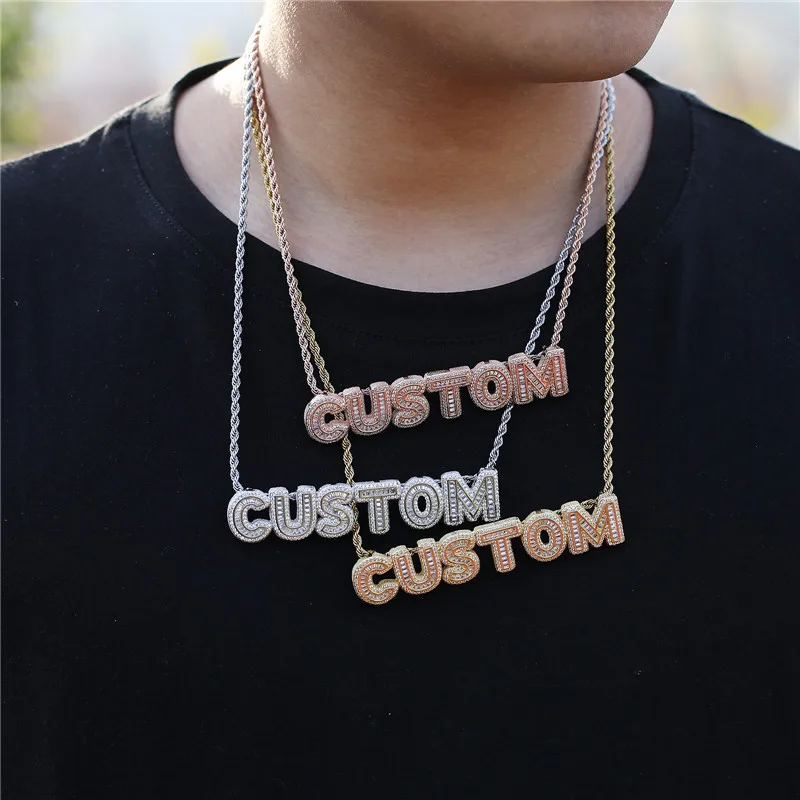 Креативный дизайн, ожерелья с кристаллами и именем, подвески для женщин и мужчин, ожерелья с буквой, ледяной кубический циркон, колье, ювелирные изделия