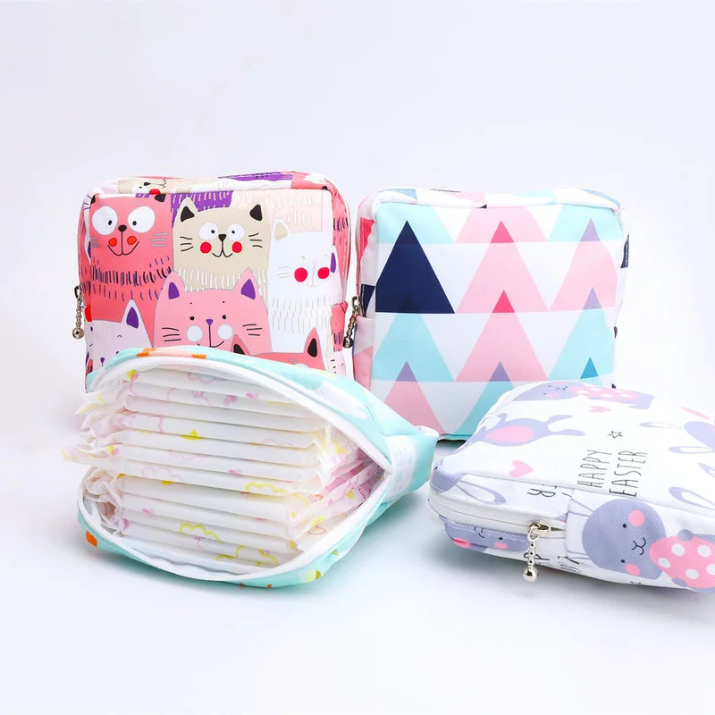 Женская Портативная сумка для хранения гигиенических салфеток, хлопковая дорожная сумка для хранения макияжа, кошелек для монет на молнии, сумка для хранения мелочей мешочек для тампонов