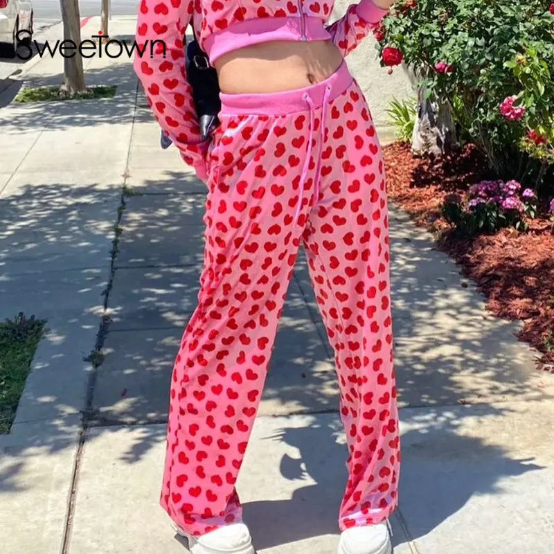 Женские брюки в стиле Харадзюку, с высокой талией и принтом сердца
