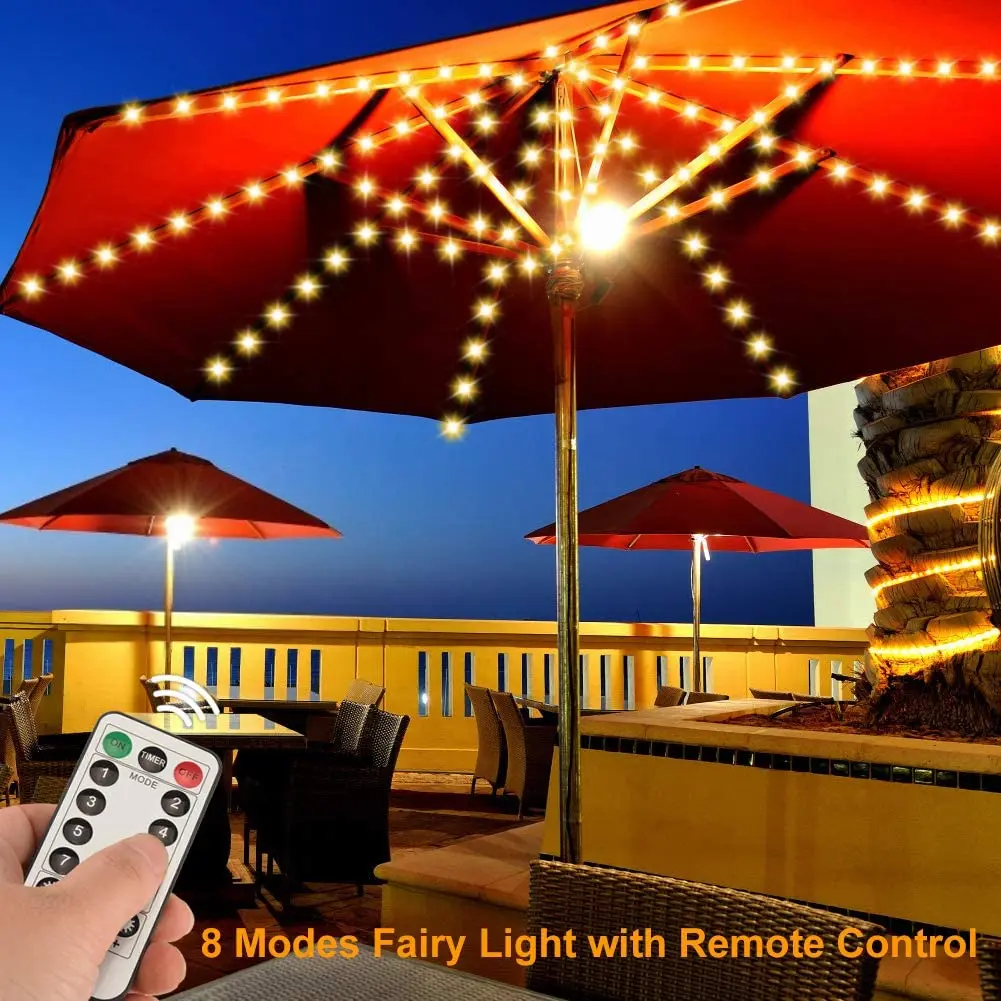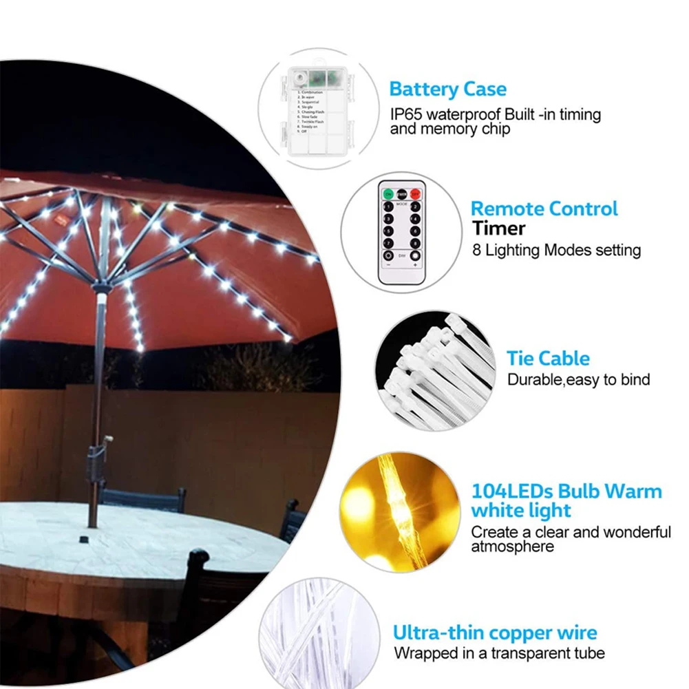 Патио зонтик огни, 104 светодиодные гирлянды с пультом дистанционного управления 8 режимов водонепроницаемый зонтик огни на батарейках открытый Полюс огни для наружного сада патио задний двор Кемпинг Аксессуары для палаток и декора