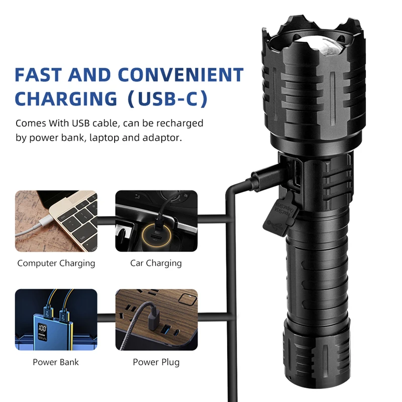 Параметры продукта: Модель продукта: JF008 Лампа из бисера Модель: 16-core светодиодный Материал линз: оптическая выпуклая линза Рабочая передача: 5 передач (сильный, средний, слабый, быстрый мигание, медленное мигание) Размер изделия: длина 18,8 см, диаметр головки: 5 см, диаметр хвостовой части 3,6 см Длина 20,8 см, диаметр головки: 5 см, диаметр хвостовой части 3,6 см (Длина после увеличения) Применимый аккумулятор: 26650x 1/18650x1 (дополнительный аккумулятор) Водонепроницаемость: IPX5 (водонепроницаемый, непромокаемый) Люмены: 5800 люменов Мощность продукта: 50 Вт Материал изделия: алюминиевый сплав Рабочее напряжение: 3,7 V Цвет изделия: черный Возможна Прямая зарядка: TYPE-C Прямая зарядка через USB (с выходом и двумя входными интерфейсами) Зум: Телескопический фокус Положение переключателя: Средний кнопочный переключатель Дисплей питания: переключатель имеет функцию отображения мощности. Зеленый светильник указывает на то, что мощность достаточно, а красный светильник указывает на то, что мощность низкая, и ее нужно заряжать Упаковка фонарика: цветная коробка Вес нетто изделия: 287 г (один фонарик) Особенности продукта: Новая быстрая зарядка через USB Type-c, функция отображения заряда батареи, увеличенная Выходная функция, может использоваться в качестве банка мощности для зарядки мобильных телефонов, увеличенных линз, более широкого диапазона освещения, добавлен молоток безопасности в задней части, который используется для аварийной ситуации. Противоскользящие линии корпуса трубки, напавшая на голову. 1,16 Основная лампа бисер, высокая яркость до 5800 люмен, срок службы 100000 часов; 2. Выпуклая линза: большая выпуклая линза Eagle eye, выпуклая линза, хороший светильник, производительность передачи, не легко повредить, прочная алюминиевая ударная головка для защиты объектива от износа 3. Телескопический зум: растяните голову влево и вправо, чтобы увеличить, режим астигматизма-концентрации, удобный для использования в различных ситуациях; 4. Средний переключатель: высококачественный натуральный каучук материал, нескользящая поверхностная обработка, светильник сенсорный переключатель для включения светильник ing для переключения режима переключения 5. Контакт батареи: контактная конструкция батареи имеет хорошую электропроводность и эффективно предотвращает плохой контакт.