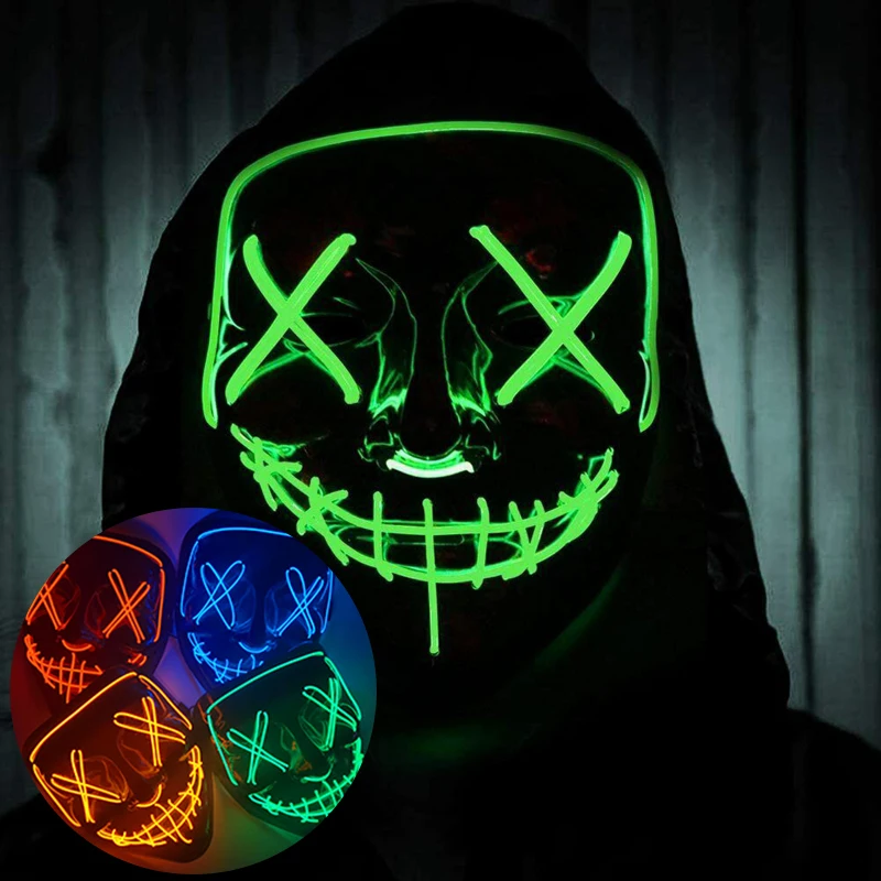 Косплэй светодиодный светильник маска ночь Хэллоуин пугающая Маска Костюм, способный преодолевать Броды для взрослых Для женщин и мужчин, для детей, одежда для сна на Хэллоуин фестиваль вечерние украшения