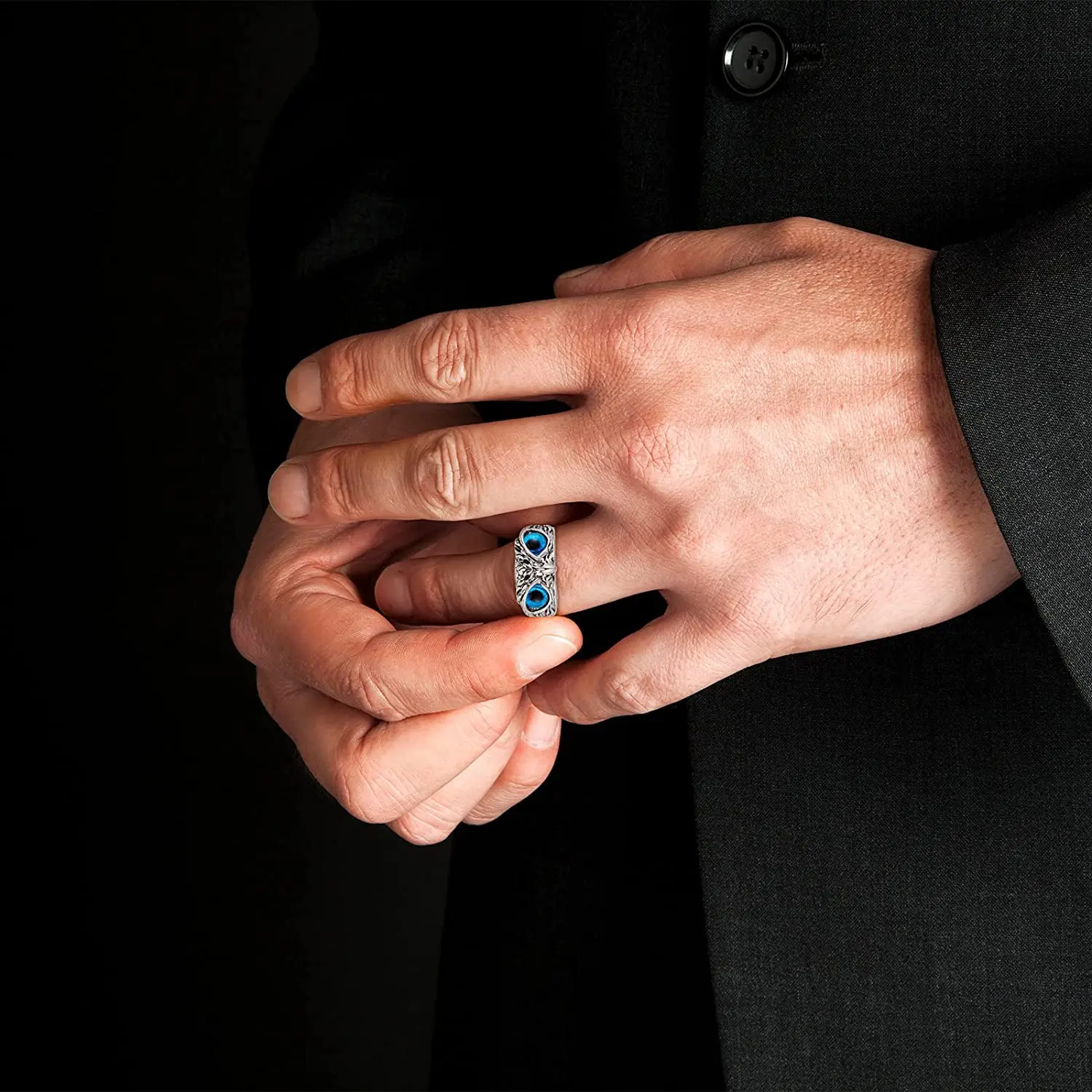 Кольцо унисекс в готическом стиле, с голубыми глазами, регулируемое