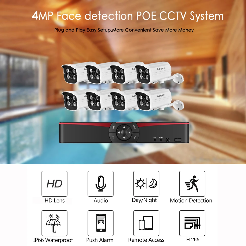 H.265 8CH 4MP POE сетевой видеорегистратор охранная система видеонаблюдения Системы 4.0MP ИК Открытый Водонепроницаемый аудио металлическая IP камера P2P видео наблюдения