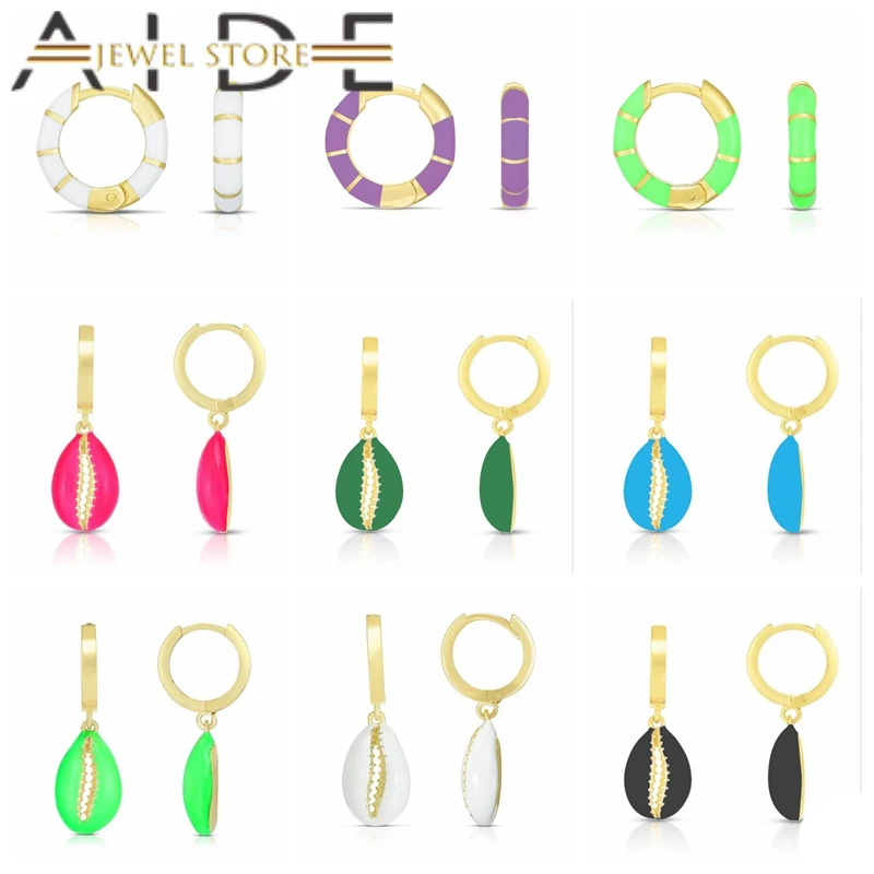 Женские серьги-кольца Aide с разноцветной эмалью, фиолетовые/зеленые/розовые серьги-кольца с капающим маслом
