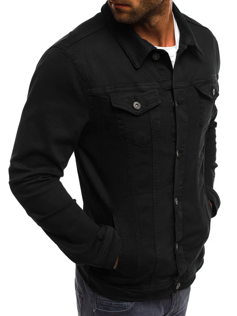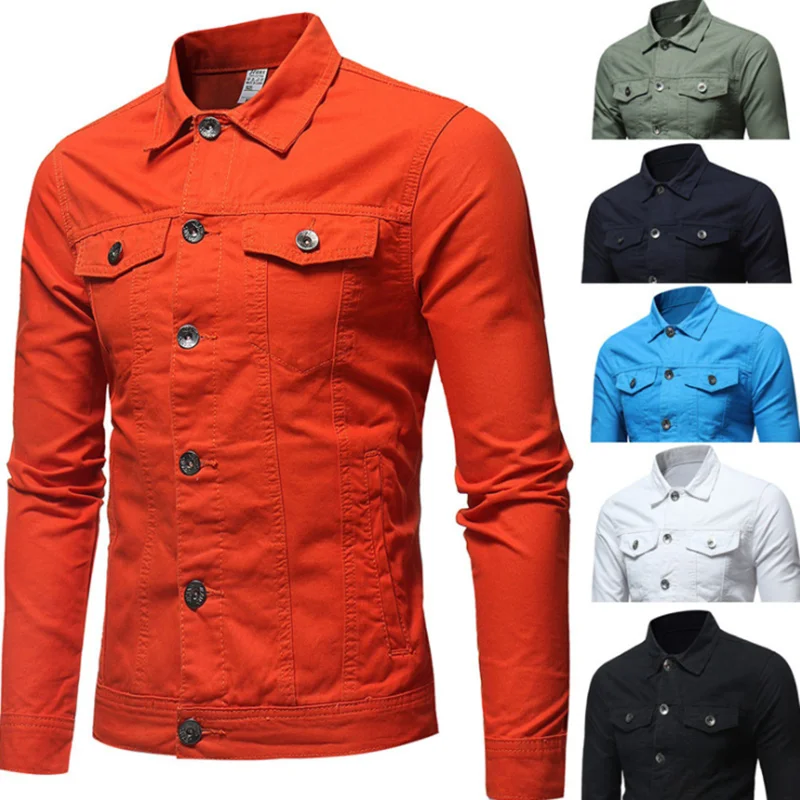 Мужская однобортная джинсовая куртка, Повседневная однотонная куртк...