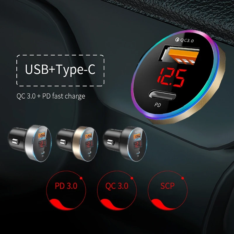 Двойной Порты и разъёмы быстрой зарядки 36 Вт QC3.0 PD USB C автомо...