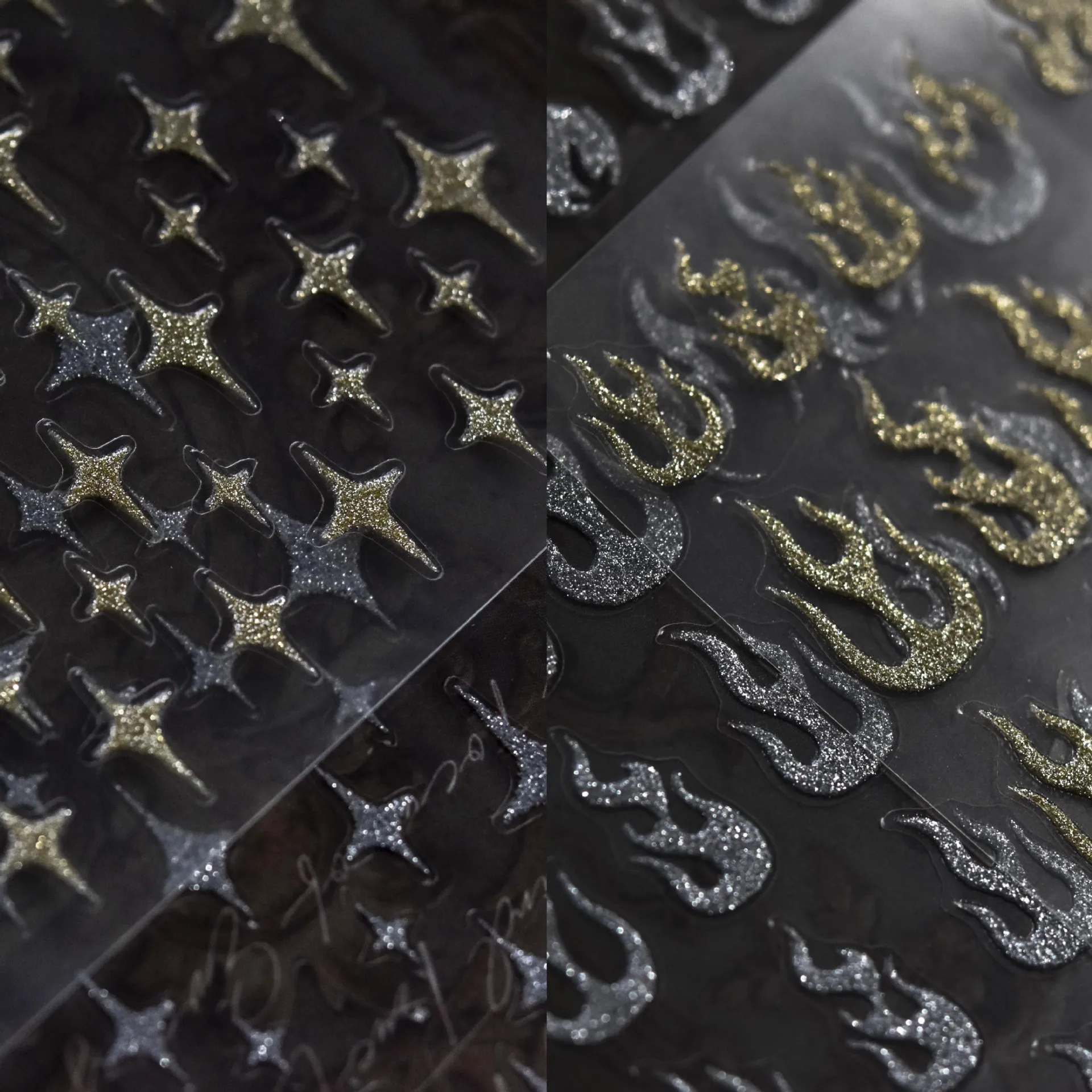 5D Позолоченные рельефные наклейки для дизайна ногтей Маникюрные наклейки Золотой Серебристый огонь звезда стеллат Алмазная пудра чувственные украшения