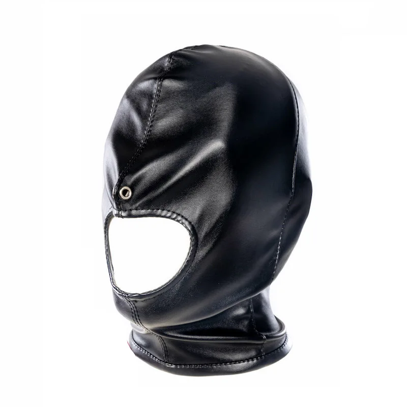 Повязка на глаза кожаная, маска на голову, фетиш, открытый рот, мас...