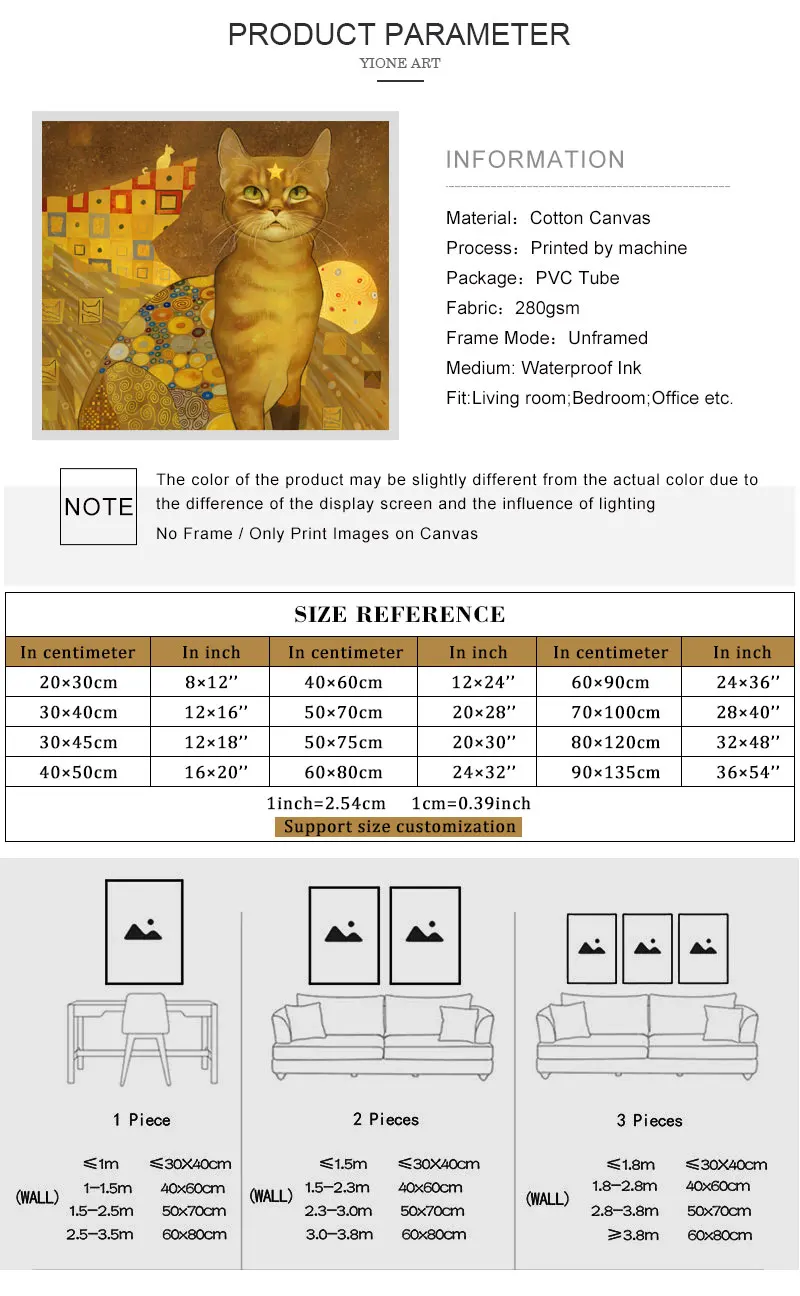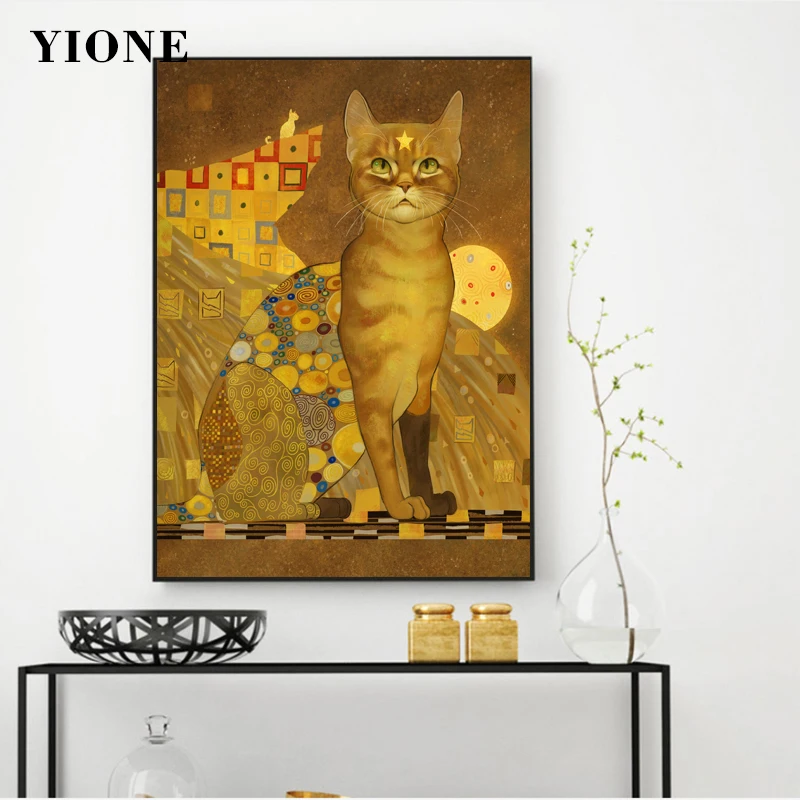Картина Густав Климт, кошка, абстрактная картина, ретро животное, домашнее животное, желтый плакат, Настенная картина, украшение для гостиной
