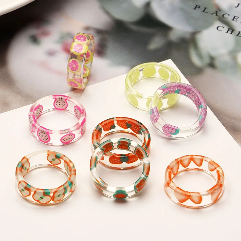2021 богемное летнее фруктовое прозрачное акриловое кольцо из смолы для женщин и девочек, новый дизайн, клубника, лимон, ювелирные изделия, вечерние подарки