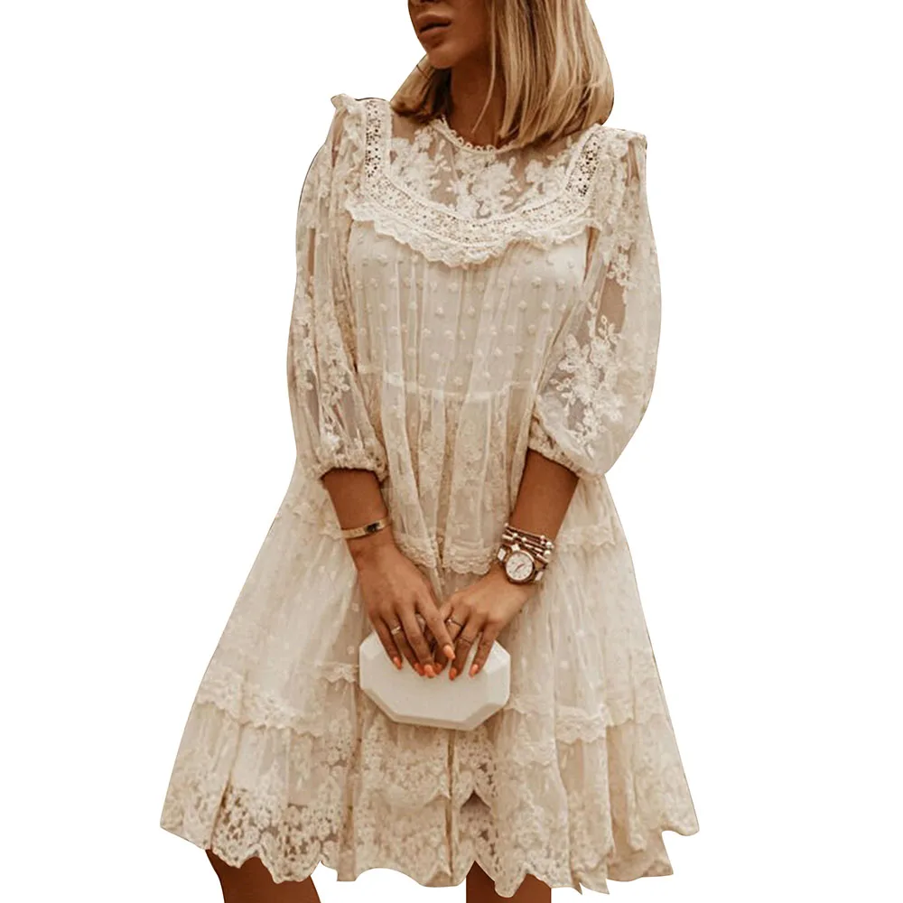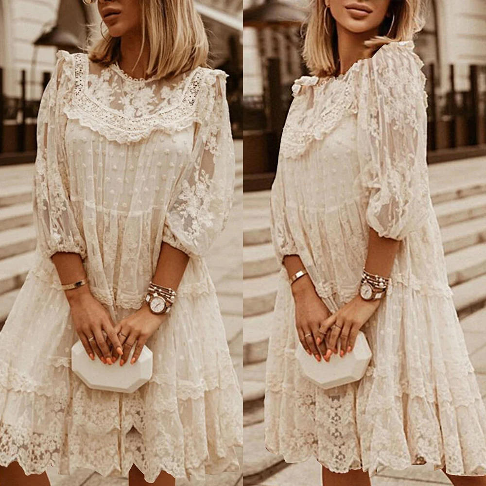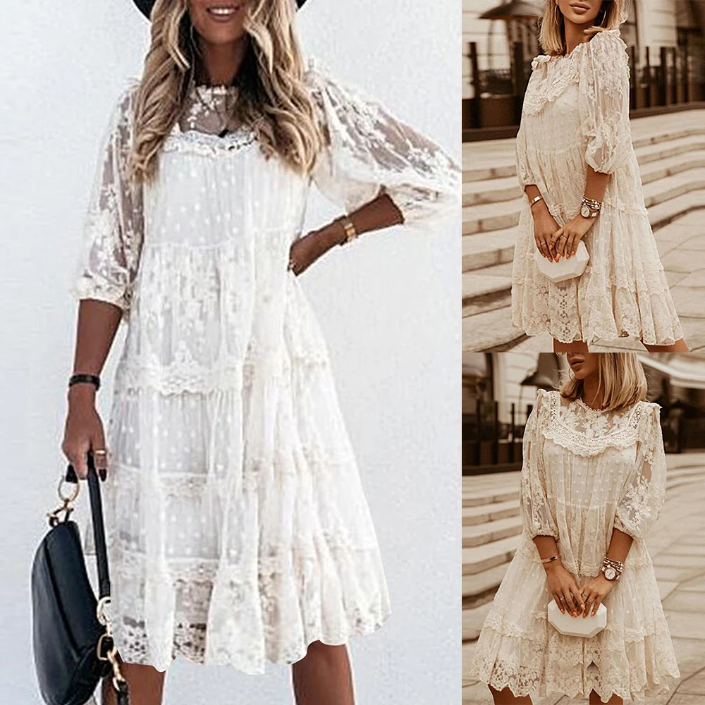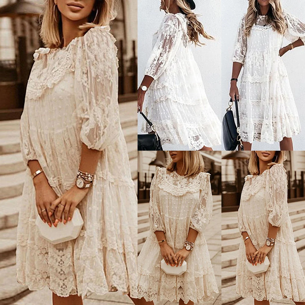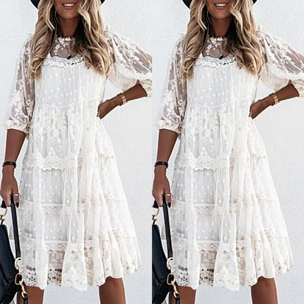 Женское шифоновое Хлопковое платье-миди, с коротким рукавом и оборками, с круглым вырезом, летний белый сарафан для офиса и офиса, D30
