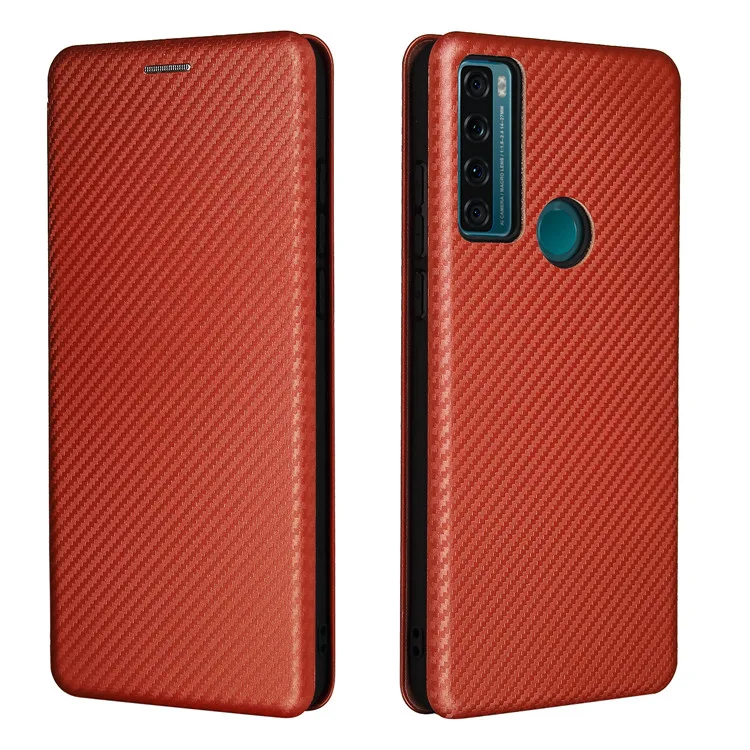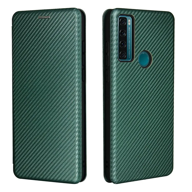 Чехол для TCL 20 SE, кожаный чехол-книжка из углеродного волокна дл...