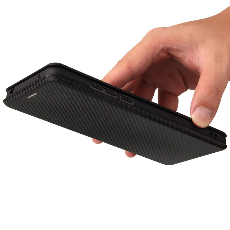 Магнитный откидной кожаный чехол-бумажник из углеродного волокна дл...