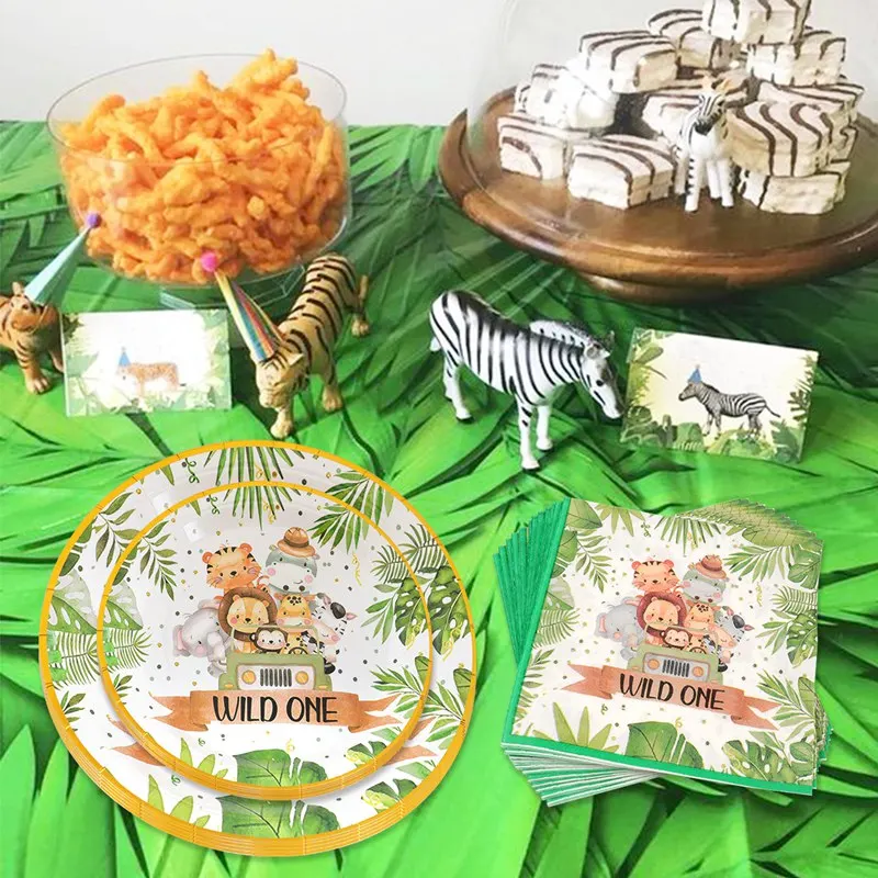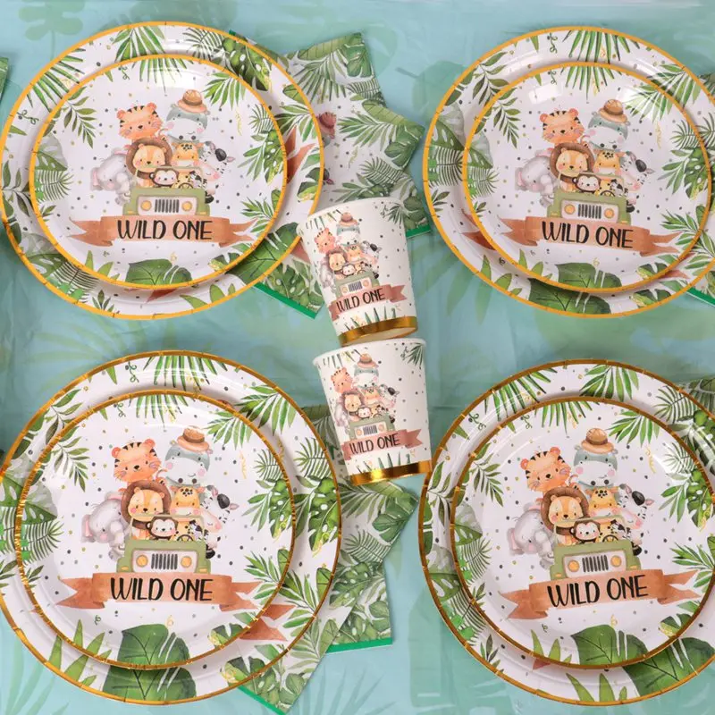 Джунгли Лес посуда в виде животных вечерние декор и надписью Wild One День рождения вечерние комплект одежды для маленьких мальчиков и девочек, декор для душа детская 1st День рождения вечерние поставки