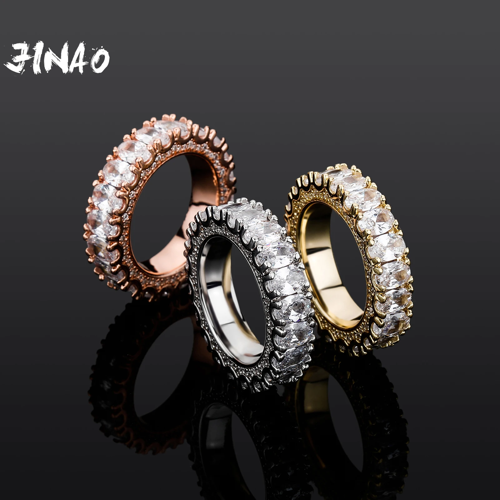 Новинка 2021, Женское кольцо JINAO, простые обручальные кольца со сверкающими микрозакрепками из фианита, свадебные кольца, украшения в стиле хип-хоп для подарка