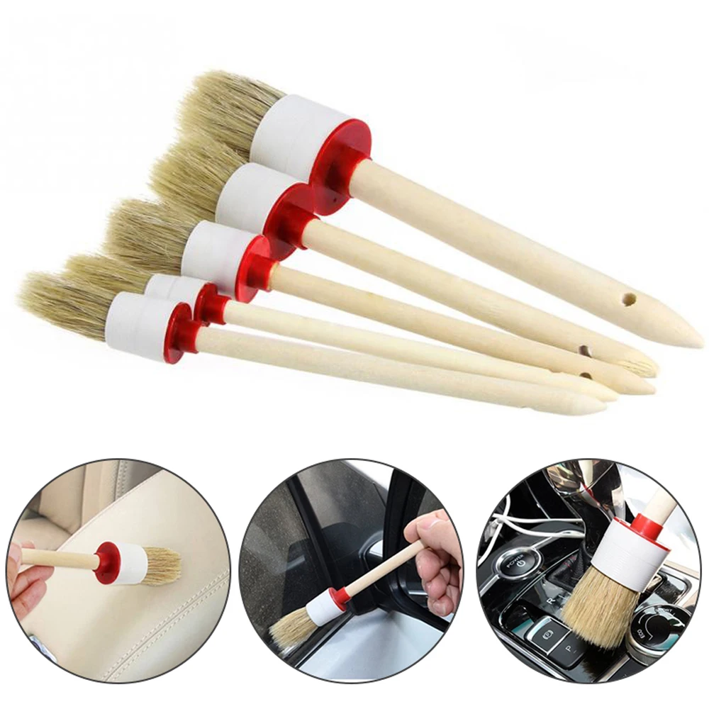 Щетка автомобильная из мягкой щетины, деревянная ручка для ухода за салоном, приборной панели, обода, кондиционер, мойка двигателя, автодетейлинг