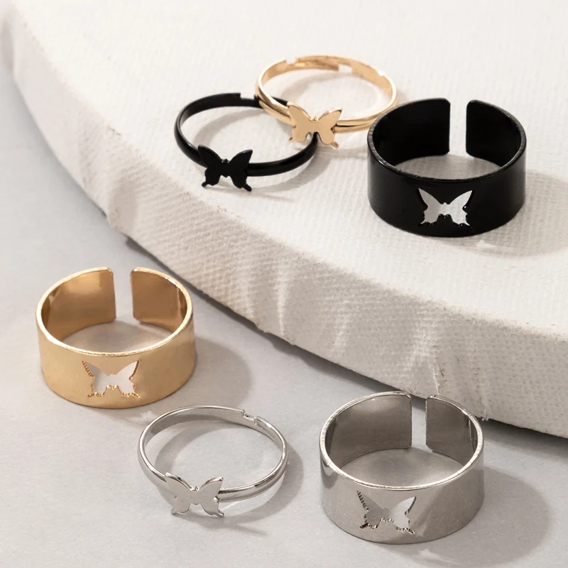 THJ винтажный набор колец в виде бабочки для пары открытые манжеты ...
