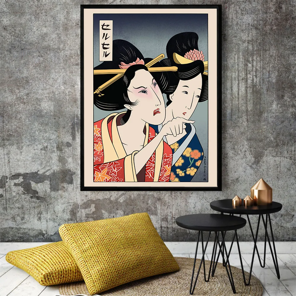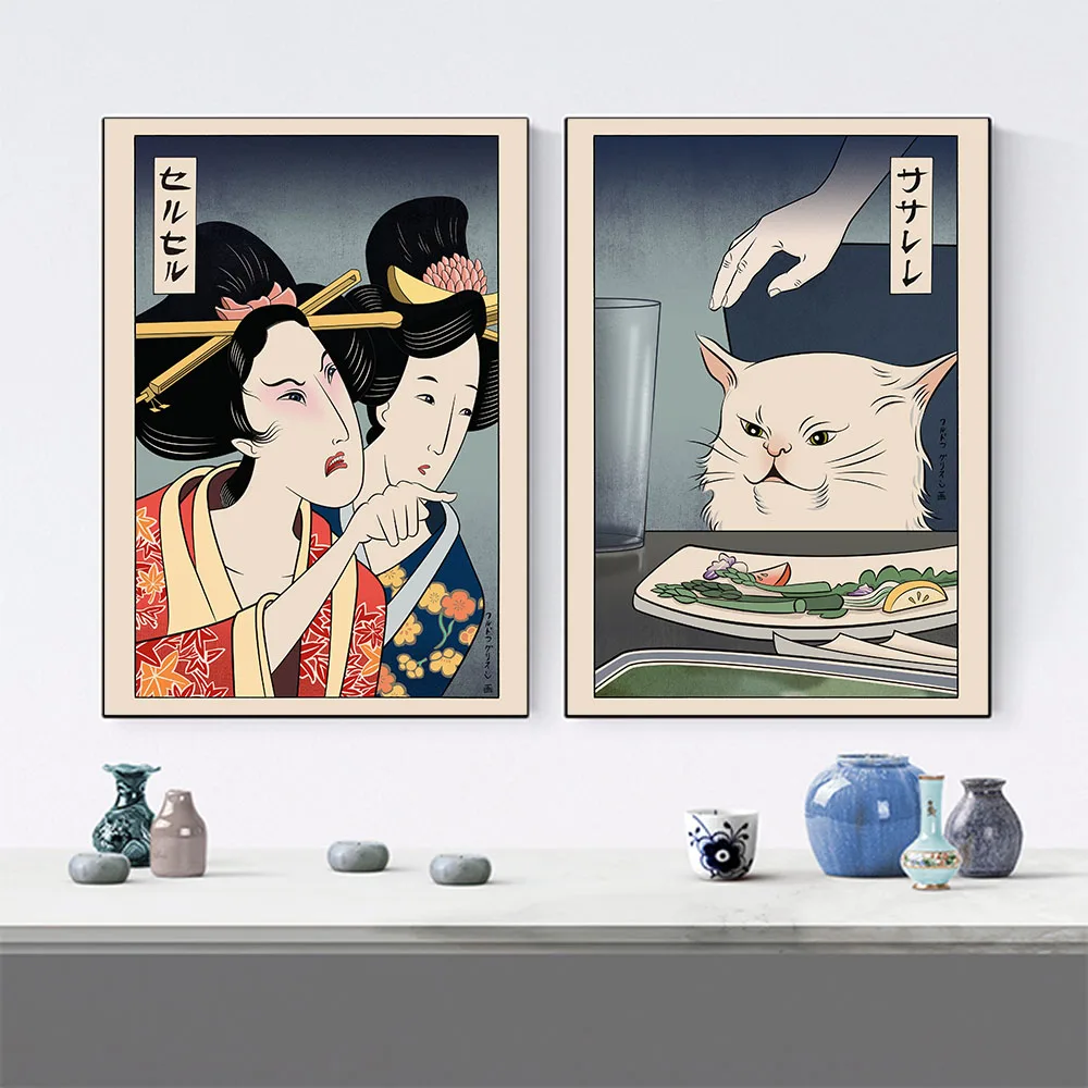 Плакаты и принты в стиле укиё, холст с изображением женщины и кошки, абстрактные настенные картины для гостиной, домашний декор без рамки