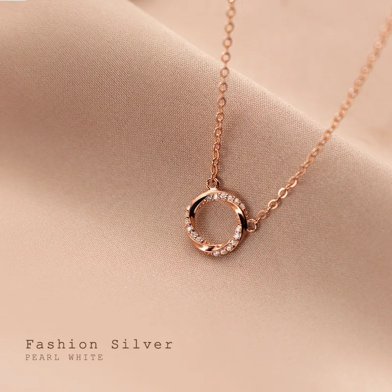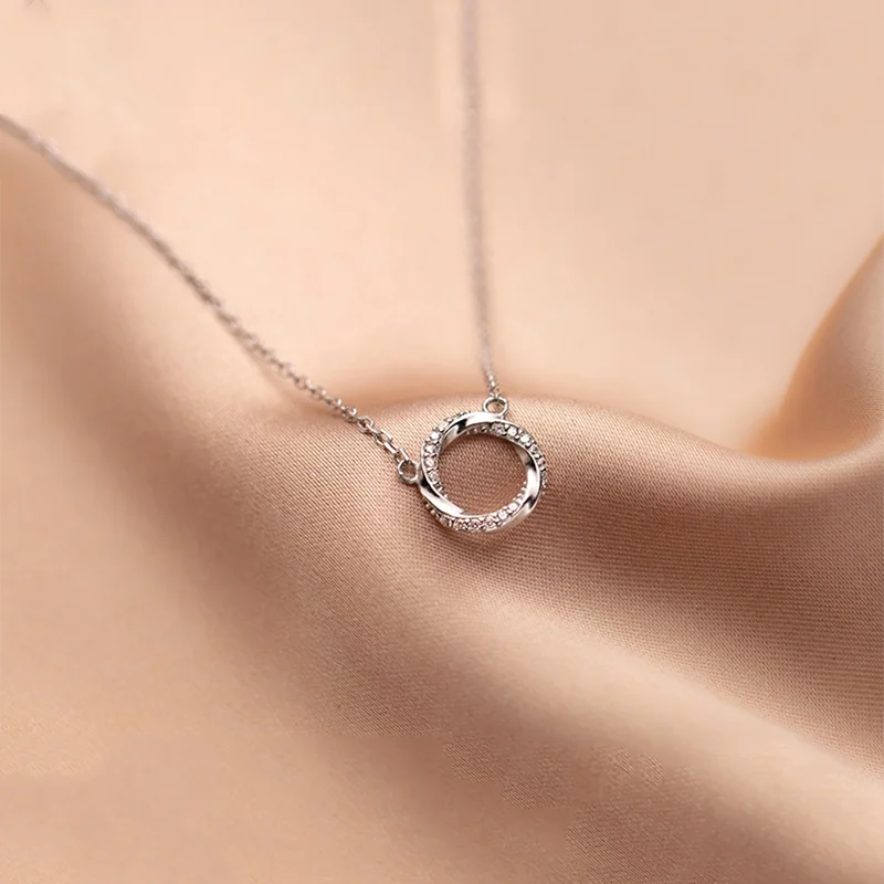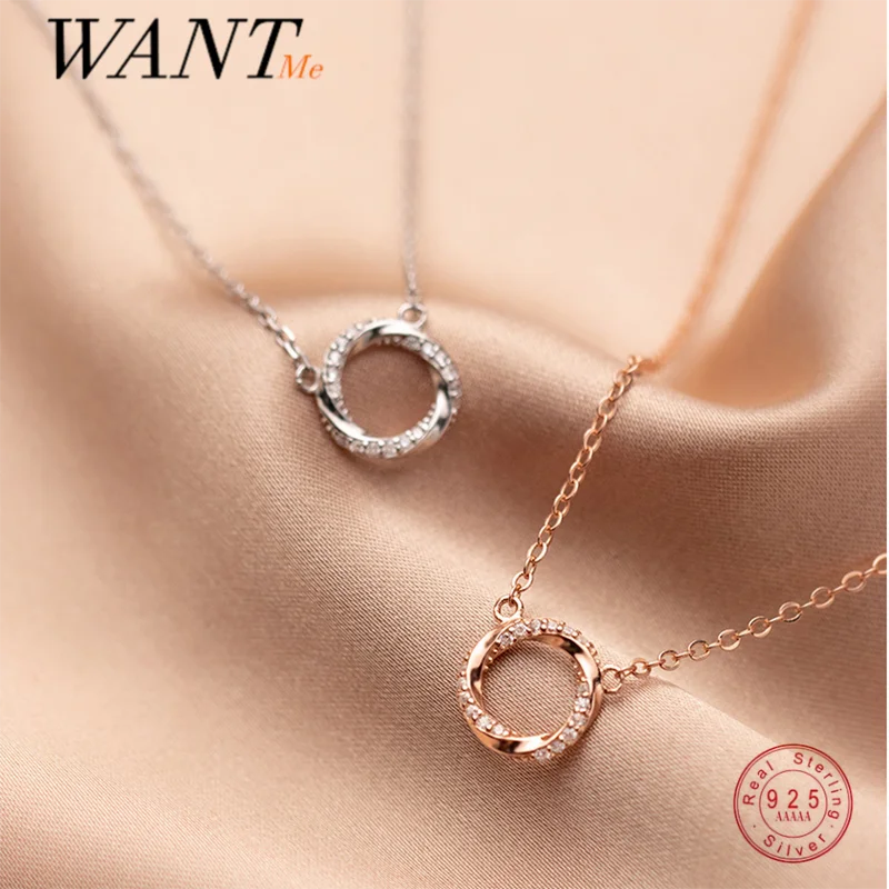 WANTME 925 стерлингового серебра, блестящее циркониевое геометрически твист кулон ключица цепочка ожерелье для женщин открытые вечерние ювелирные изделия