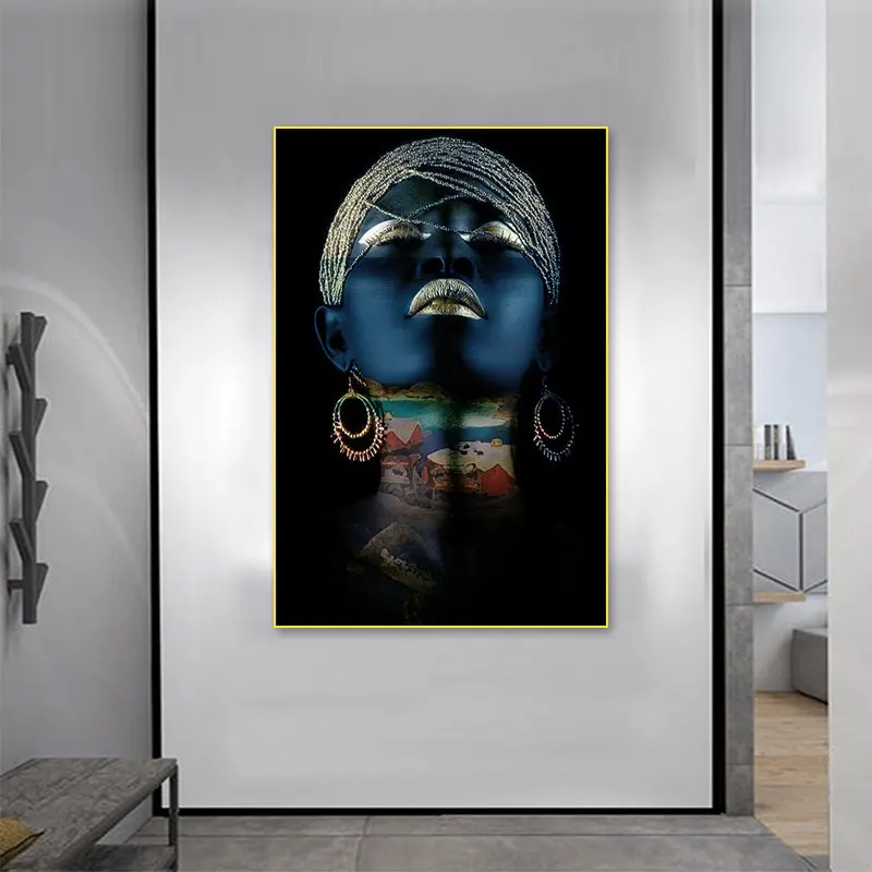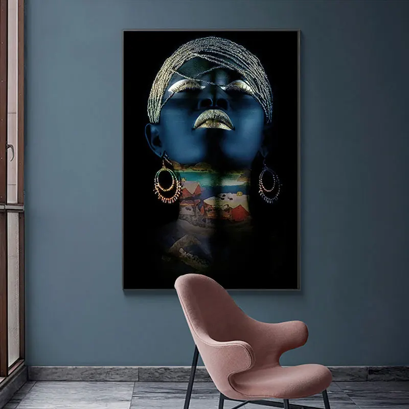 Голубые женские плакаты и принты, абстрактная картина на шею, Картина на холсте для гостиной, домашняя картина для стен, декоративная роспись с HD-рисунком