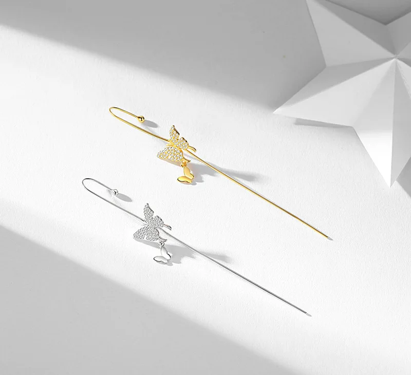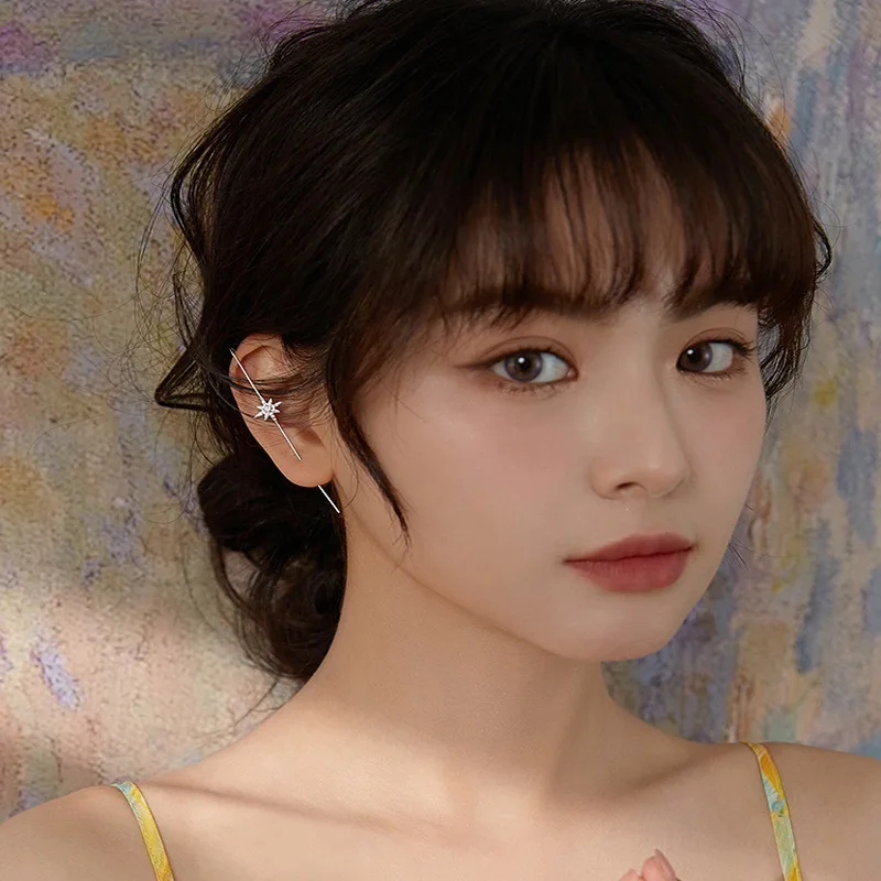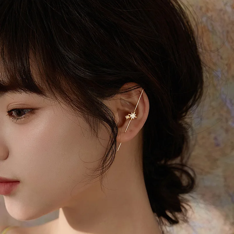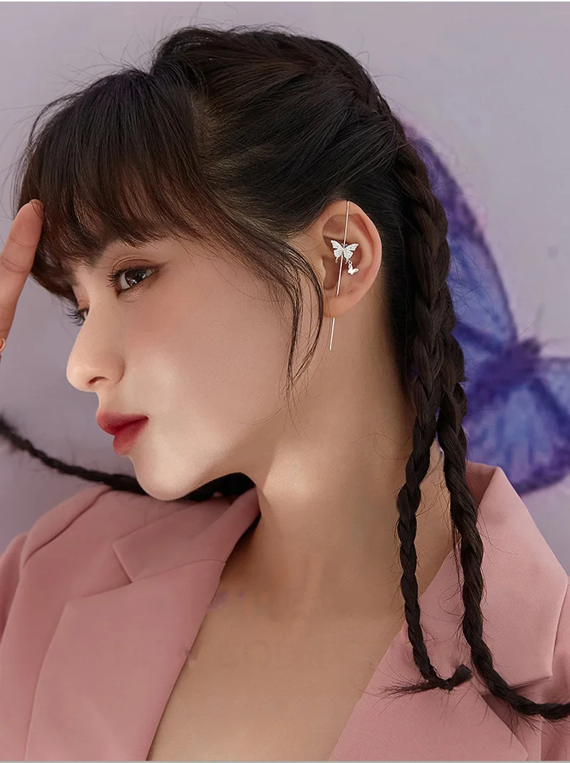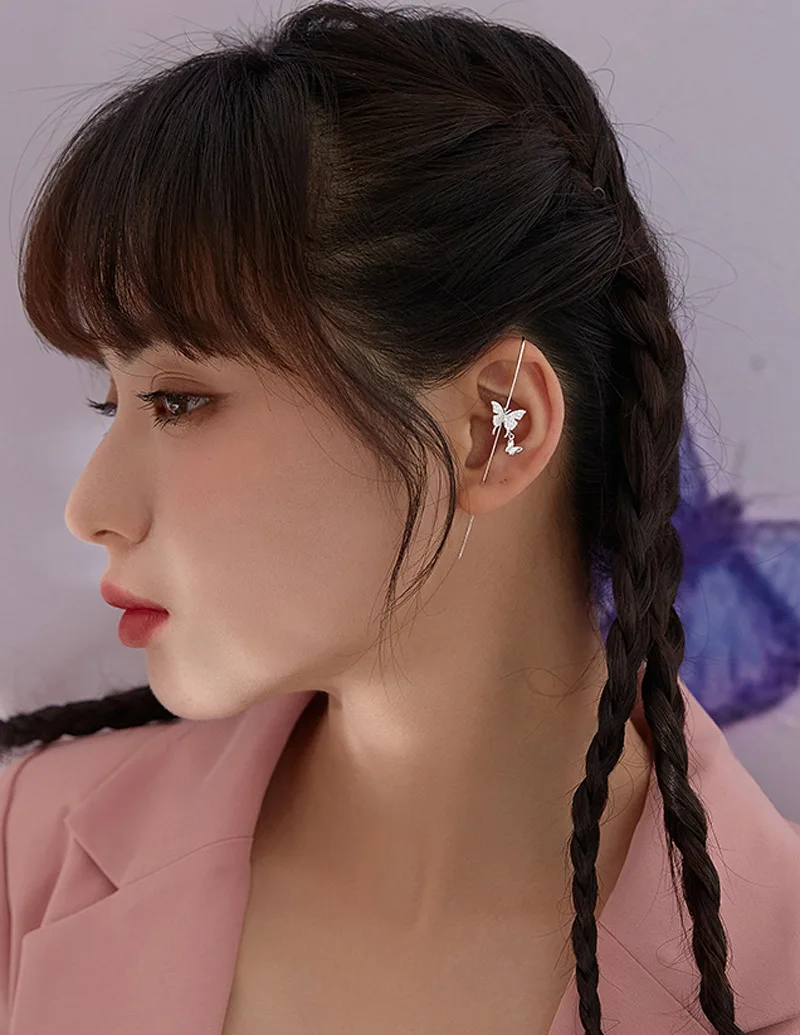 Реальные 925 пробы Серебряная Ушная манжета Обёрточная бумага на гусеничном ходу крючки для сережек для Для женщин девочек пронзили длинные серьги гипоаллергенные альпинист серьги
