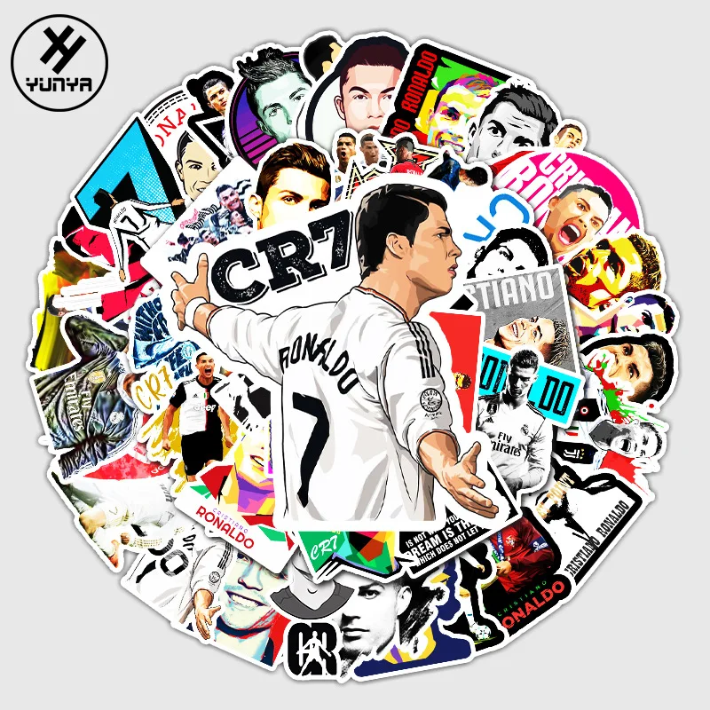 Бесплатная доставка, 52 наклейки с изображением футбольной звезды Роналду, Мультяшные граффити, наклейки для багажа, ноутбука, автомобиля, холодильника, водонепроницаемые наклейки