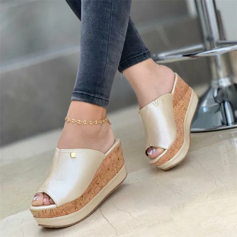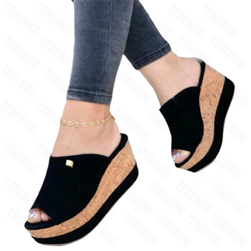 Шлепанцы женские на танкетке, сандалии с открытым носком, уличные Повседневные тапочки на платформе, тапочки на каблуке, лето 2021
