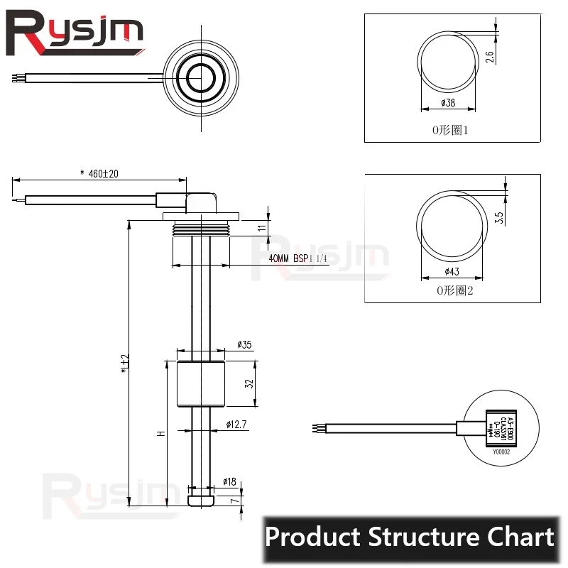 water level sensor length125/175/225/275/325/375/425/475/525/575mm