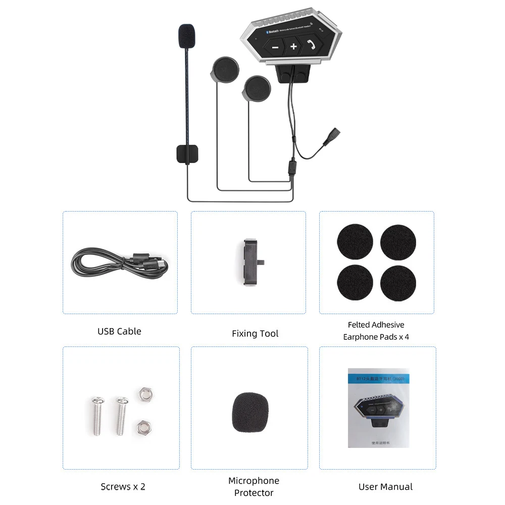 Bluetooth-гарнитура BT12 для мотоциклетного шлема с Bluetooth 5,0, беспроводные наушники громкой связи, музыкальный плеер для мотоцикла