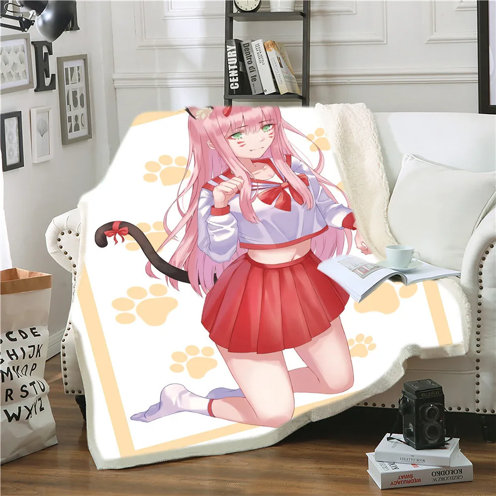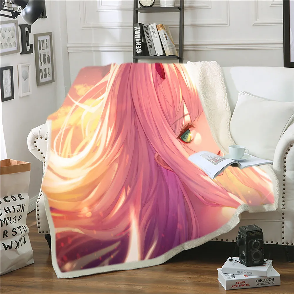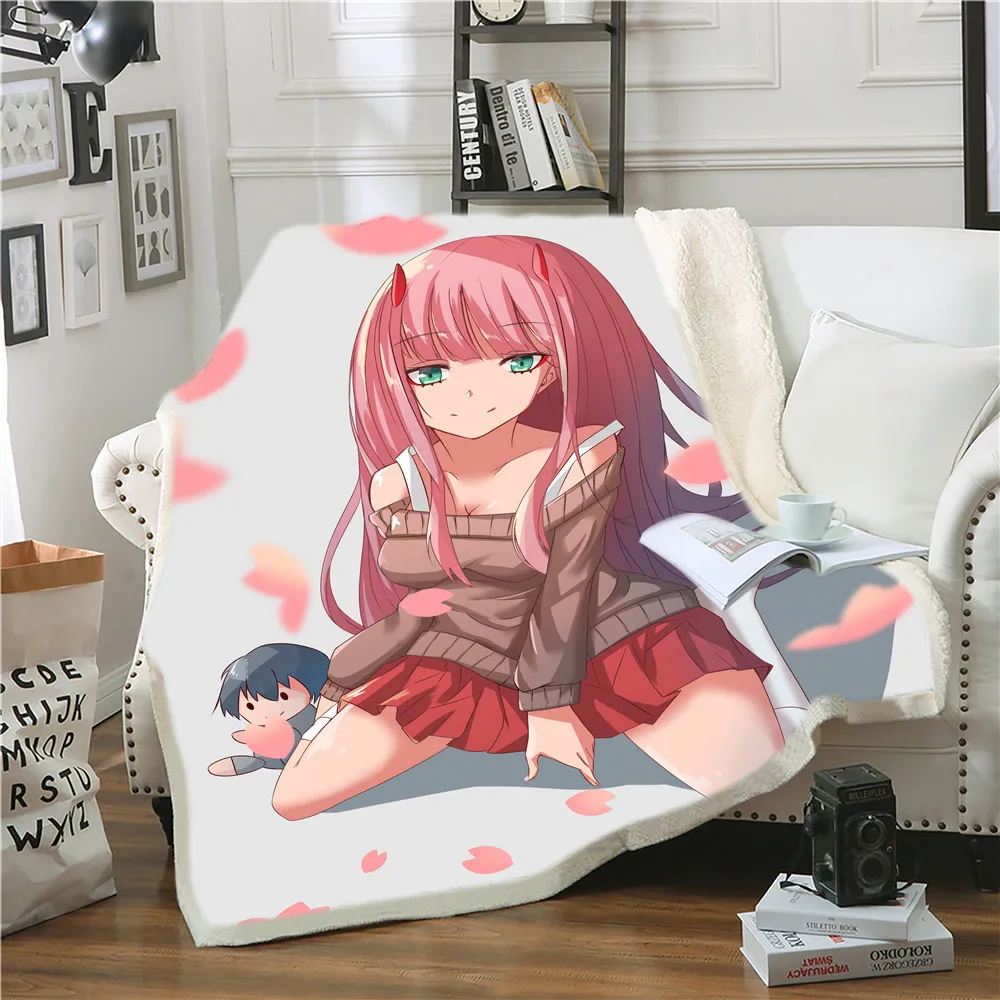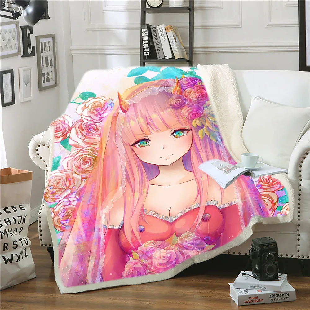 Плюшевое одеяло с 3D принтом Zero Two Darling In The Franxx, покрывало для дивана, кровати, односпальное постельное белье, подарок для мальчиков и девочек